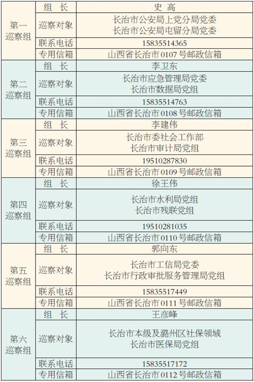 本轮巡察共派出6个巡察组和1个指导督导组,对市委社会工作部等6个党组织开展常规巡察;对市工信局党委等5个党组织开展巡察“回头看”;对市本级及潞州区社保领域开展专项巡察;对全市社保领域专项巡察开展指导督导。
