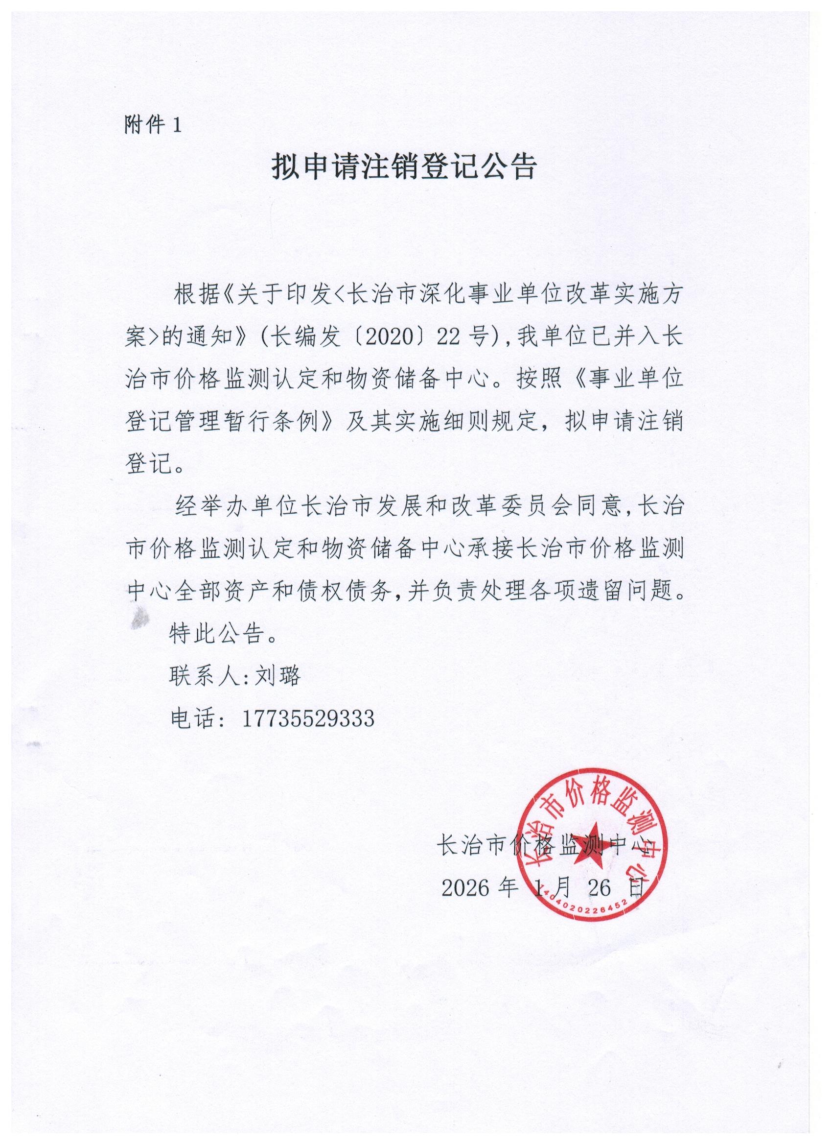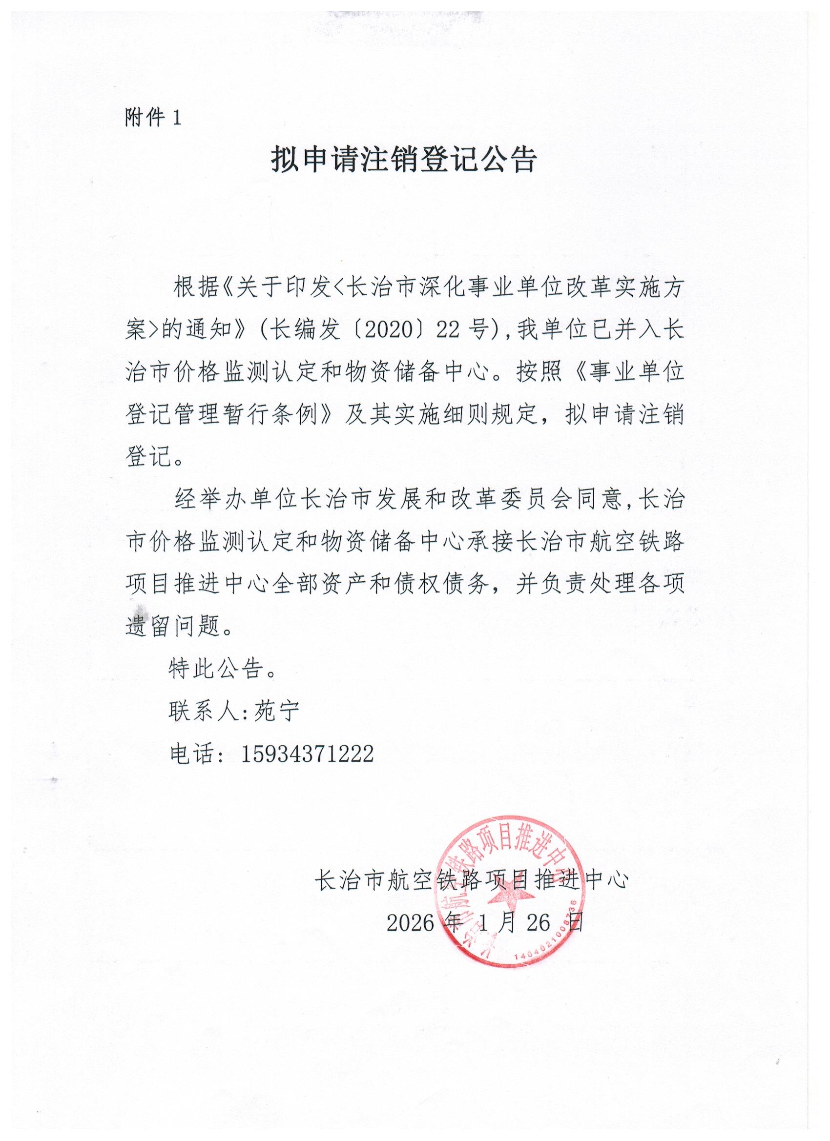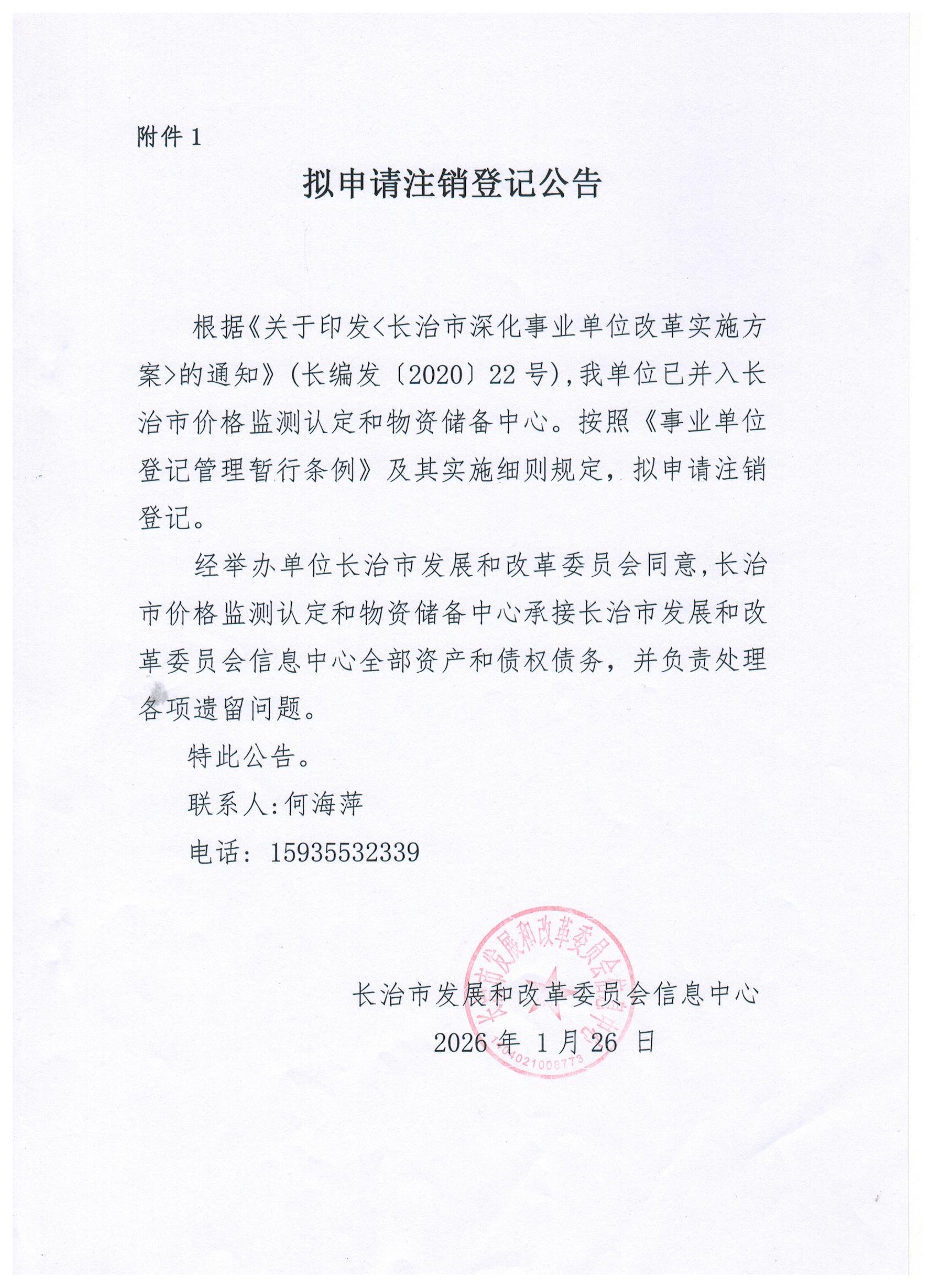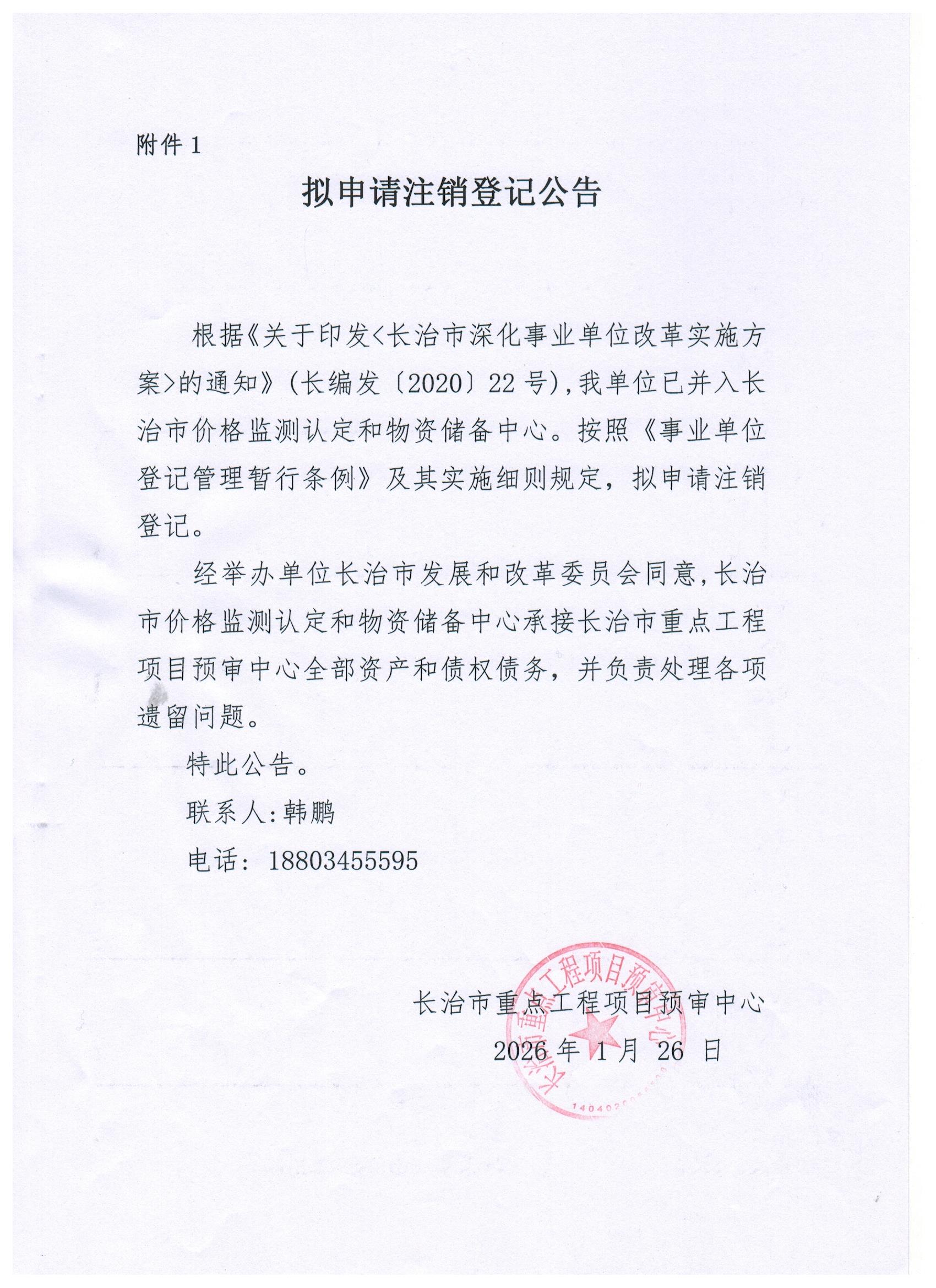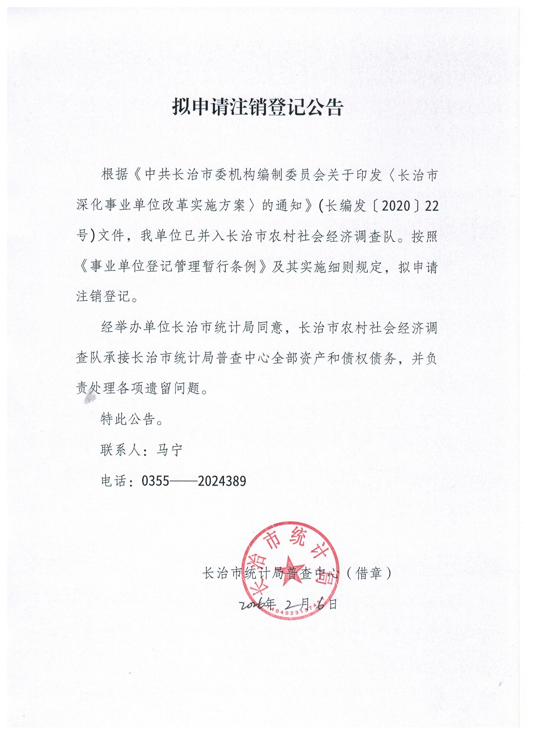 现有长治市统计局普查中心、长治市重点工程项目预审中心等7家事业单位法人申请注销登记,现发布其拟申请注销登记公告。