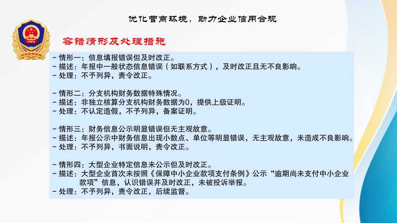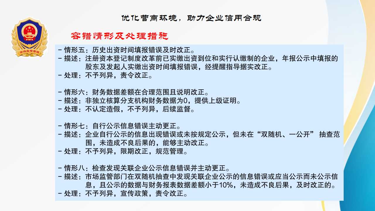长治市市场监督管理局企业信息公示监督检查容错机制(试行)解读