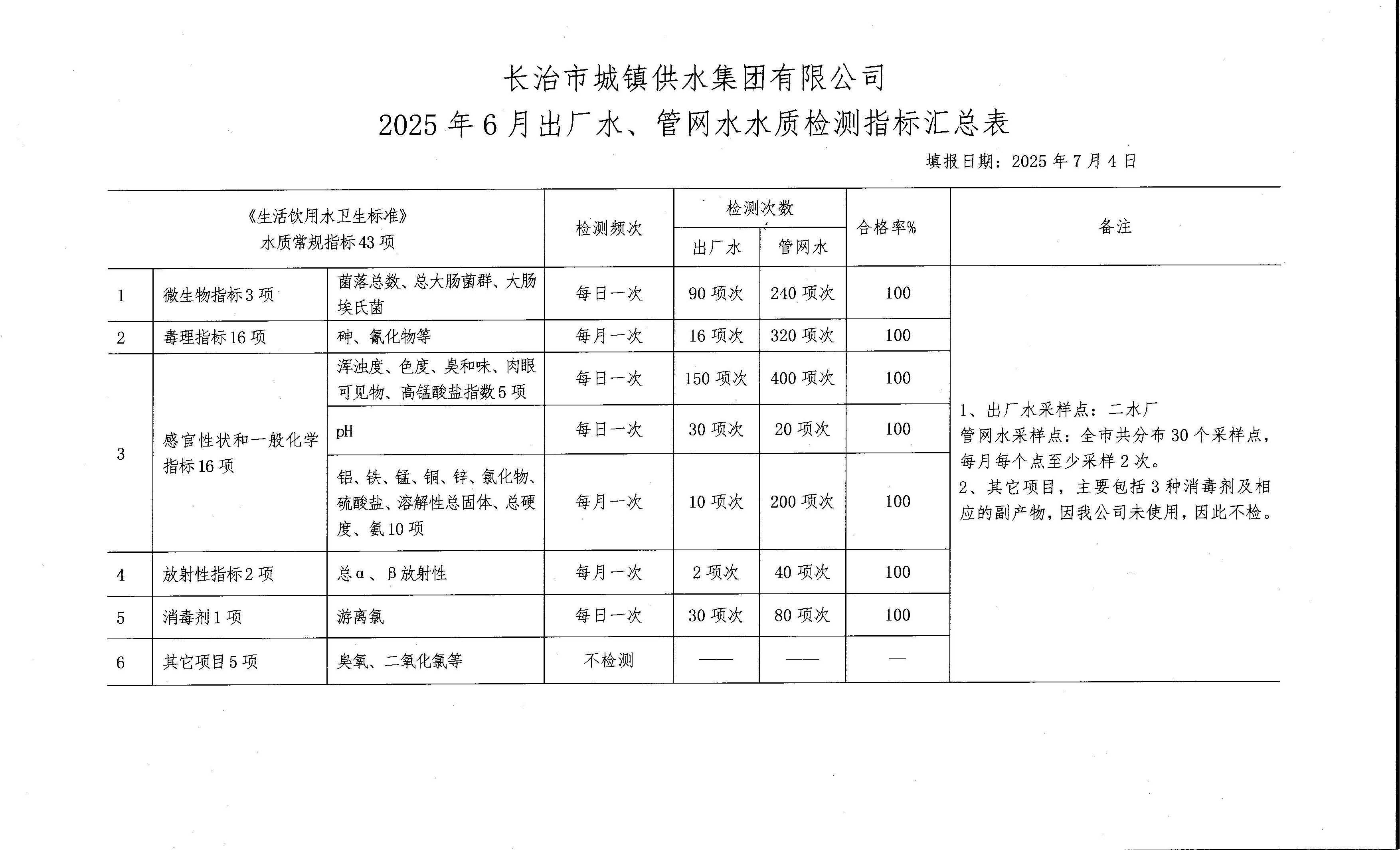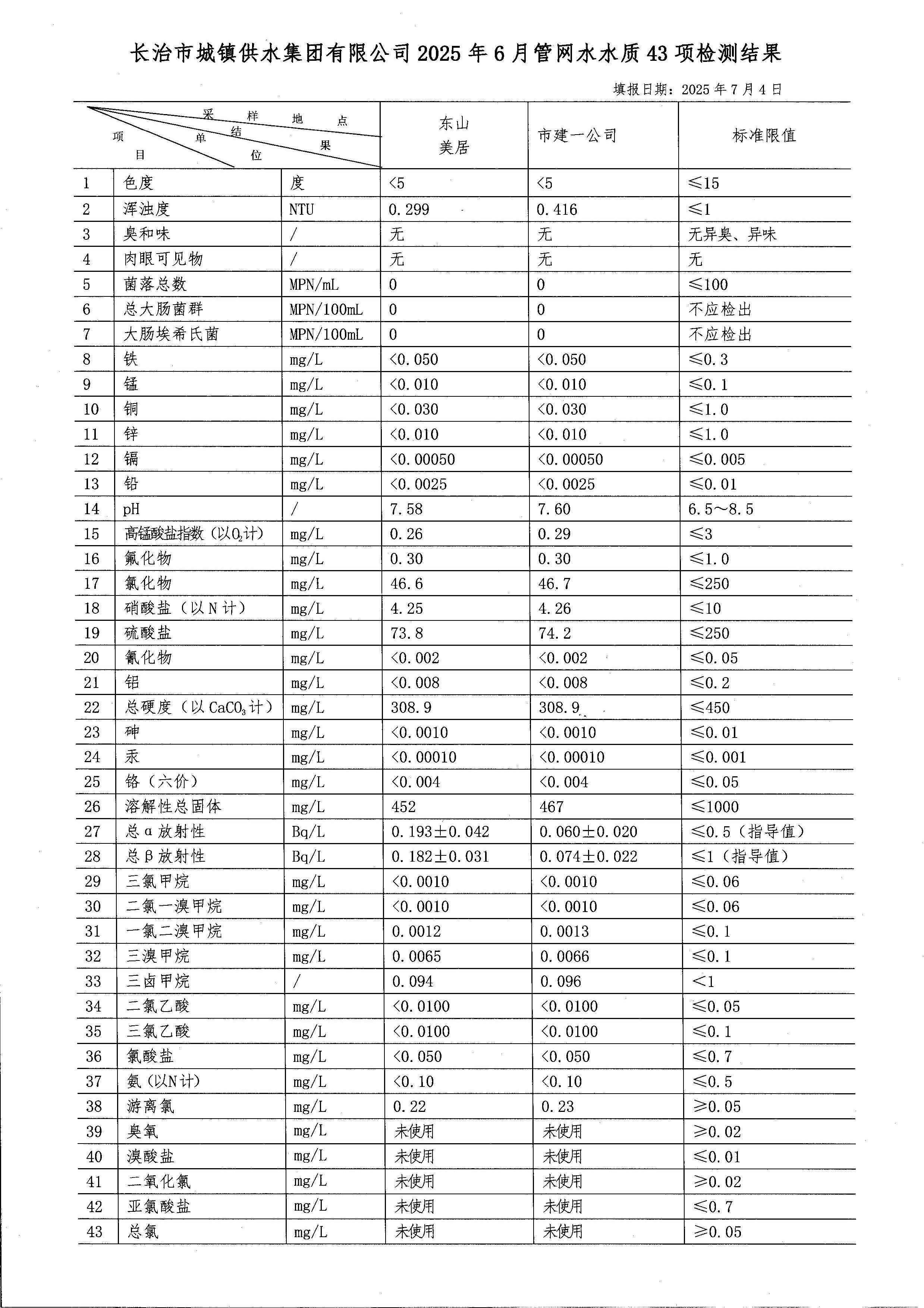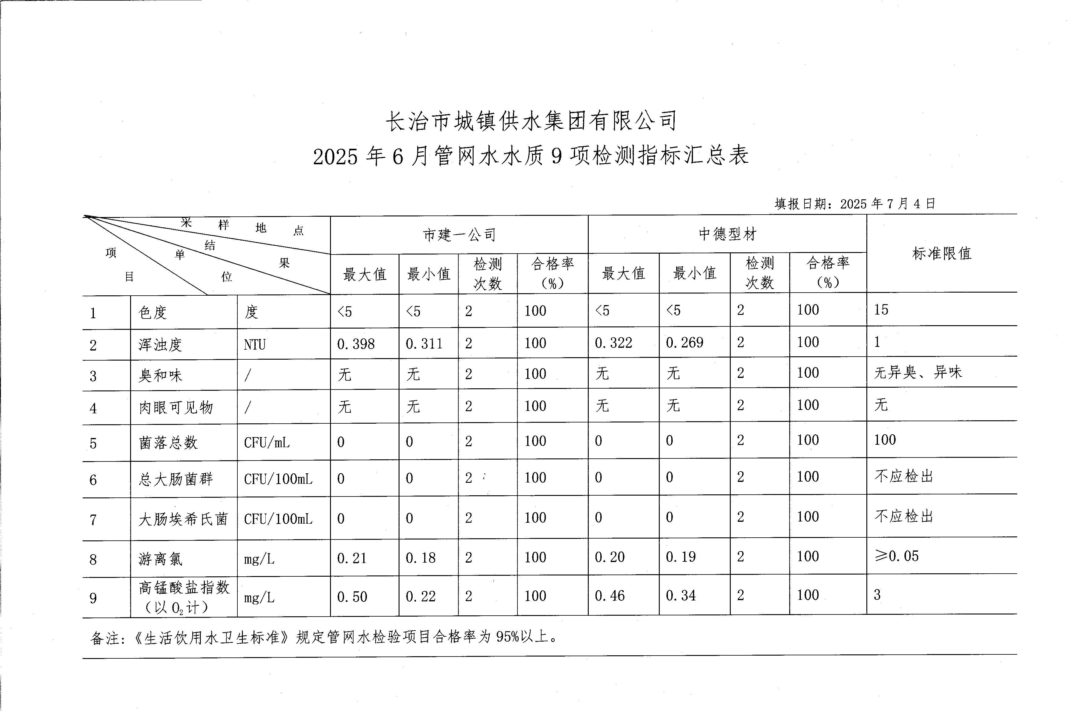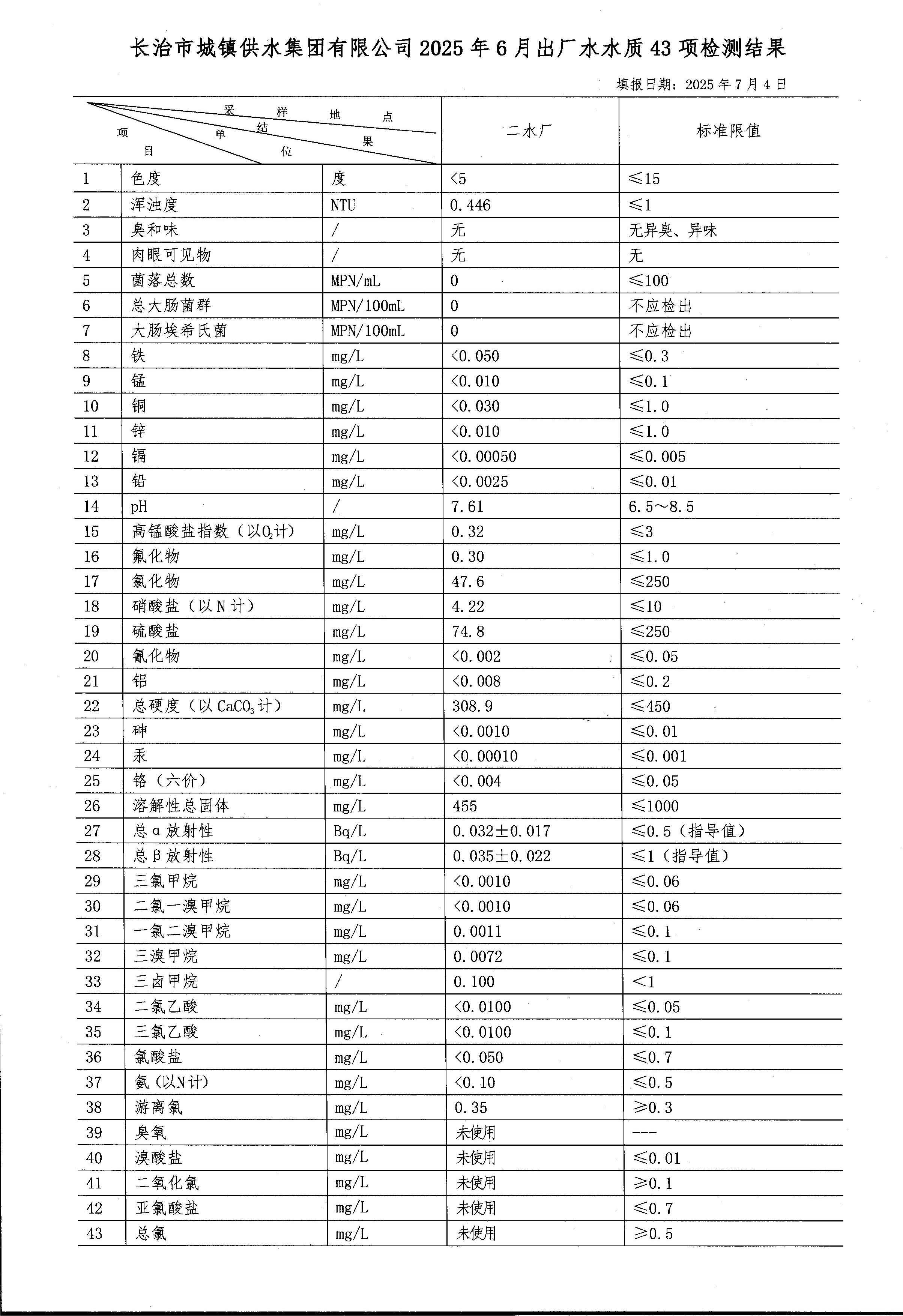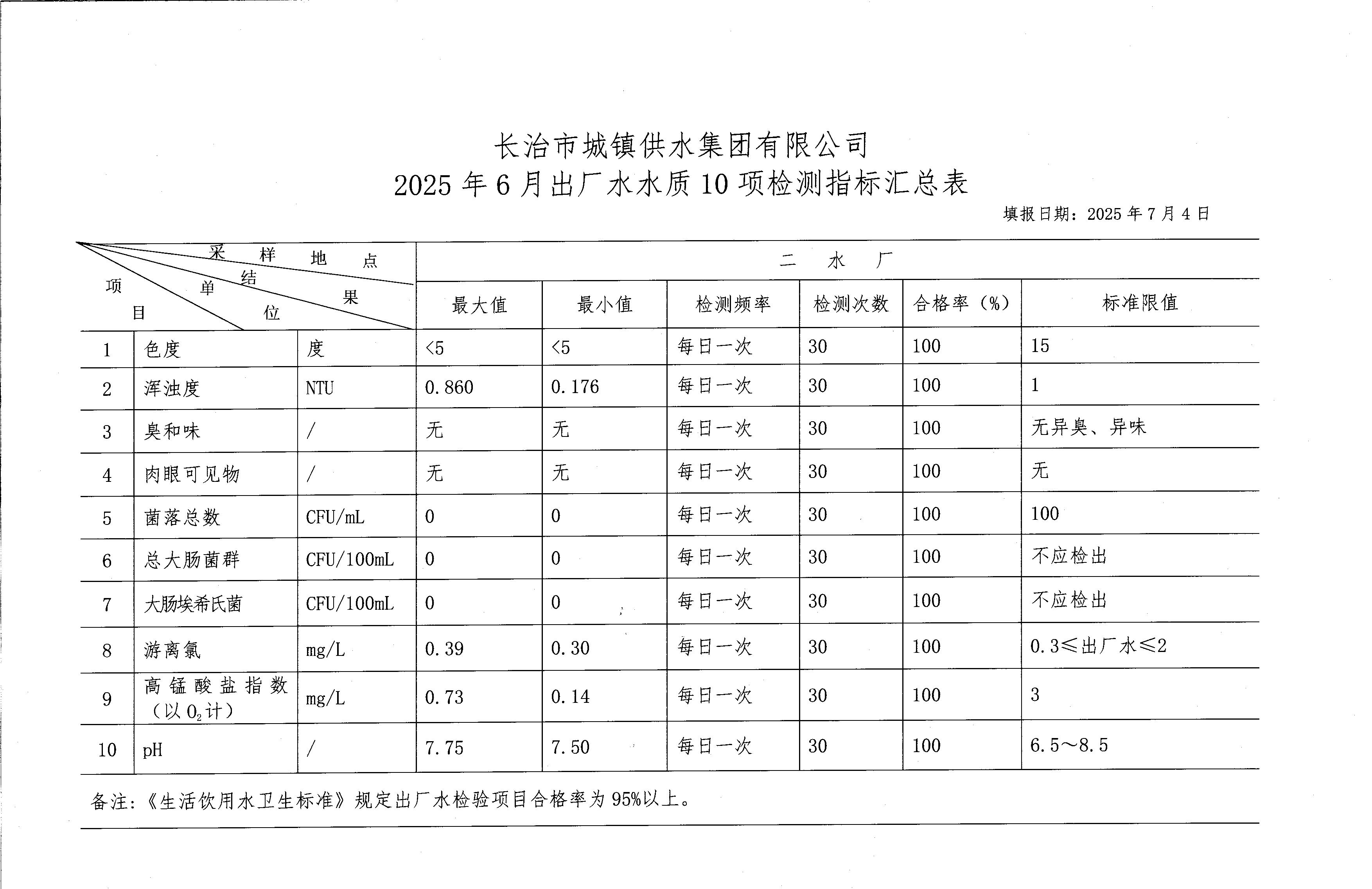 六月水质检测报告