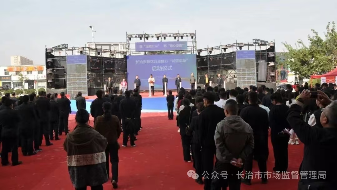 9月29日,长治市餐饮行业推行“诚信菜单”活动启动仪式在万达广场举行。活动以“我‘坦诚公示’ 您‘放心享用’”为主题,旨在提升餐饮服务透明度,保障消费者合法权益。市委常委、副市长呼亚民宣布活动启动,市市场监督管理局党组书记、局长邢怀忠发言,活动由市政府副秘书长李保民主持。