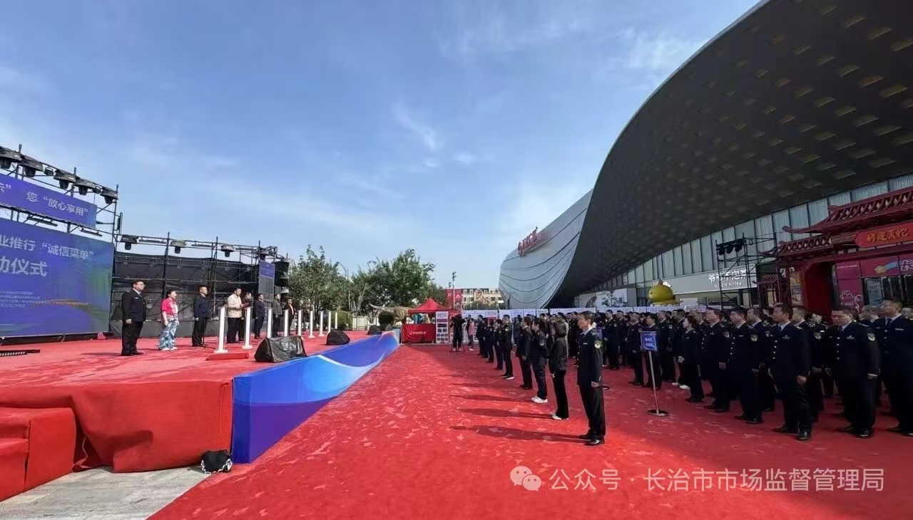 9月29日,由长治市市场监督管理局主办,高新区分局、潞州区市场监督管理局承办的长治市餐饮行业推行“诚信菜单”活动启动仪式在万达广场隆重举行。活动以“我‘坦诚公示’ 您‘放心享用’”为主题,旨在提升餐饮服务透明度,保障消费者的知情权和选择权,标志着全市餐饮行业“诚信菜单”的推行活动正式扬帆起航。