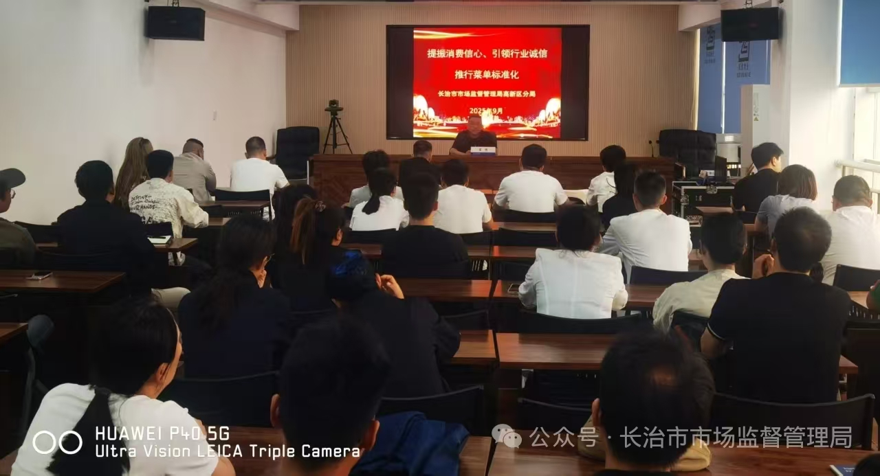 为解决消费者从吃得饱到吃得好,再到吃得明白、吃得健康的消费需求,长治市市场监督管理局高新区分局率先构想实践,指导辖区内餐饮行业开展“诚信菜单”推行活动: