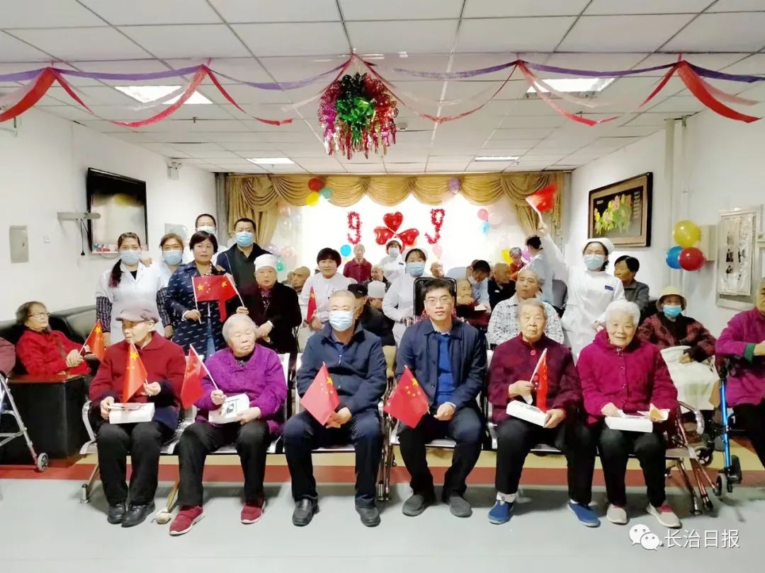 图③:10月14日,潞州区紫苑社区党委与居然之家党支部共驻共建暨重阳节座谈会,为老人们定制蛋糕,进行集体庆祝活动。记者杨军 摄