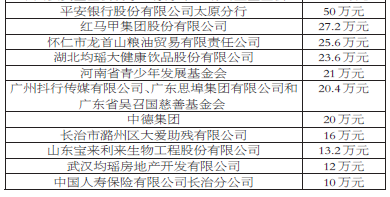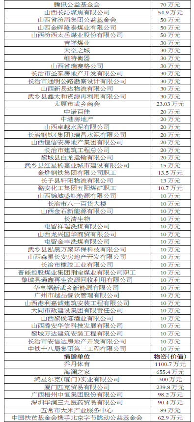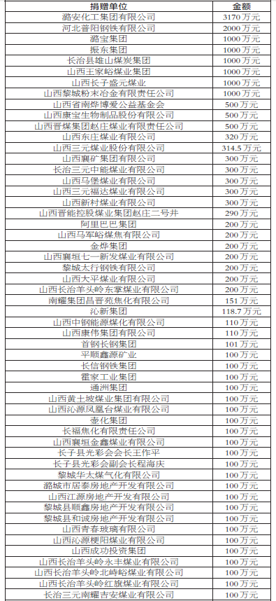 2021年长治市防汛救灾大额捐赠情况