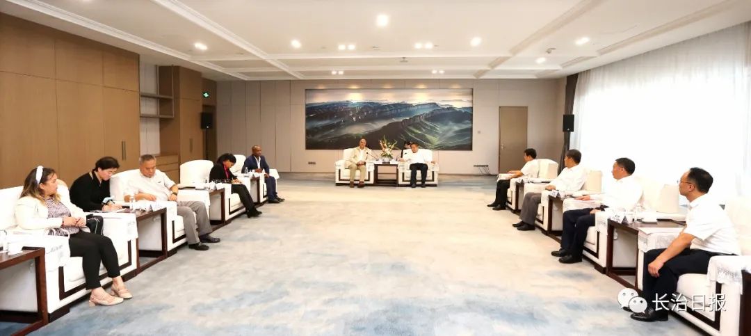 陈耳东对佩雷拉大使一行来长访问表示欢迎,并简要介绍我市经济社会发展情况。他说,长治历史文化悠久,红色基因厚重,自然资源丰富,生态环境良好,产业门类齐全,社会事业蓬勃发展。长治拥有雄厚的医药健康产业基础、丰富的医疗卫生资源和优秀的医药领域、技能领域人才。近年来,生物医药产业被确定为长治重点培育发展的战略性新兴产业之一。长治高度重视招商引资工作,持续优化营商环境,不断深化对外开放格局,积极开展对外交流合作,目前已与50多个国家和地区开展经贸往来,引进外资企业70多家。中古两国情谊深厚,经贸交流频繁。古巴在生物科技和医疗技术领域取得的成果闻名世界,新能源、食品加工、现代旅游等产业发展壮大,与长治的产业发展关联度高,合作空间广阔。特别是经过前期考察对接,古方与中方合资的百泰生物公司已与长治高新区签订合作意向,将投资建设新的生产线。希望佩雷拉大使在促进项目落地建设中,给予大力支持与帮助,推动项目早日开工建设。同时,希望佩雷拉大使一行在长期间多走一走、看一看,深入全面地了解长治、宣传长治、推介长治,努力在深化双方合作上结出丰硕成果。