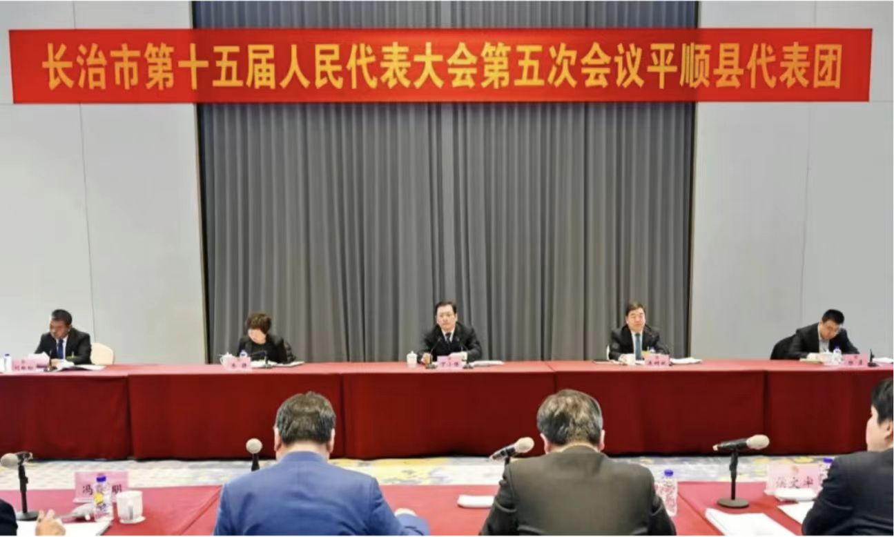 2月24日,市人大代表、市委书记丁小强在平顺县代表团与代表们一同审议政府工作报告。