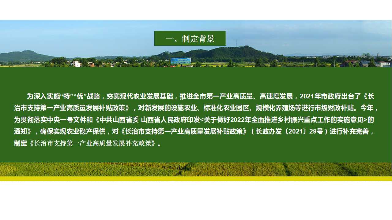 图文解读:《长治市支持第一产业高质量发展补充政策》