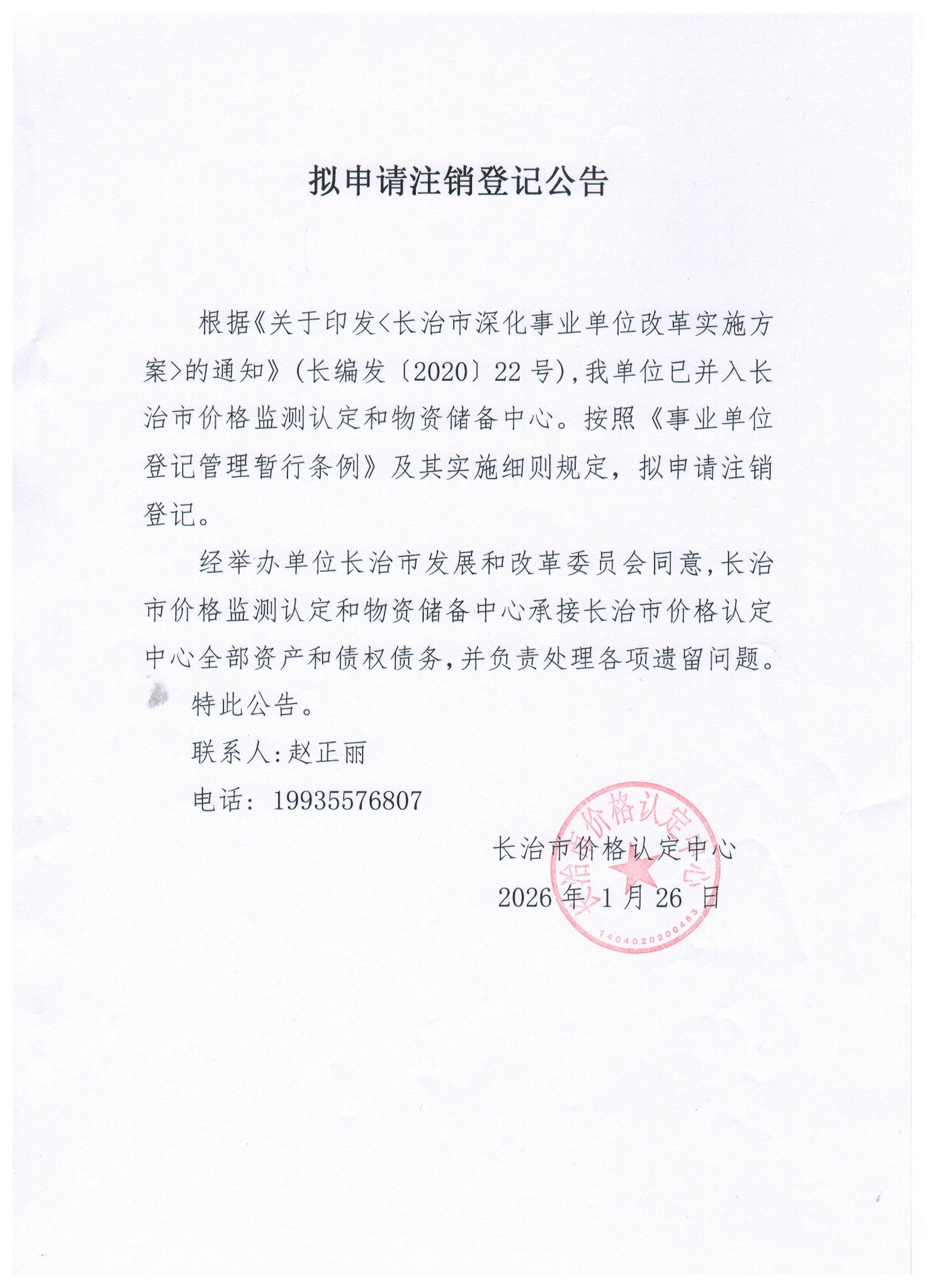 现有长治市统计局普查中心、长治市重点工程项目预审中心等7家事业单位法人申请注销登记,现发布其拟申请注销登记公告。