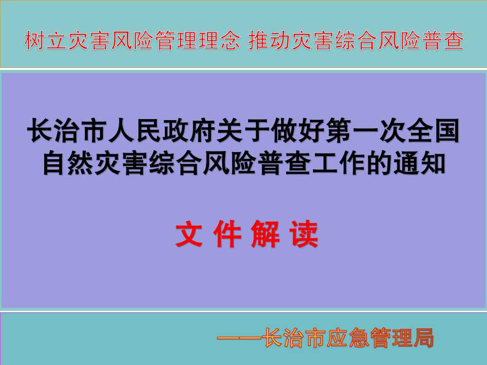 图文解读:《长治市人民政府办公室关于做好第一次全国自然灾害综合风险普查工作的通知》(已废止)