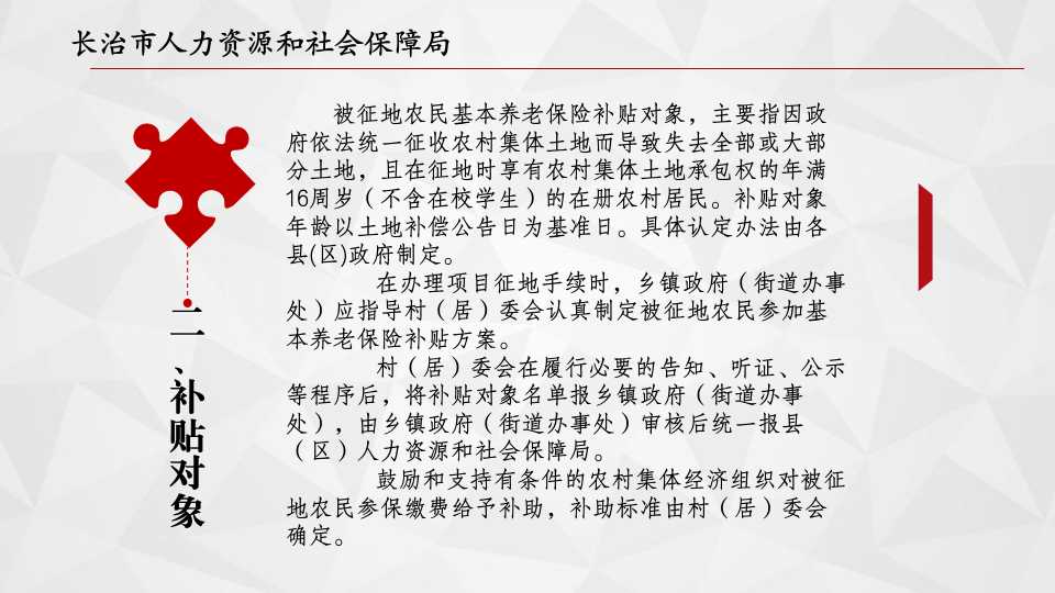 图文解读:《长治市人民政府办公室关于对被征地农民实行基本养老保险补贴的实施意见》