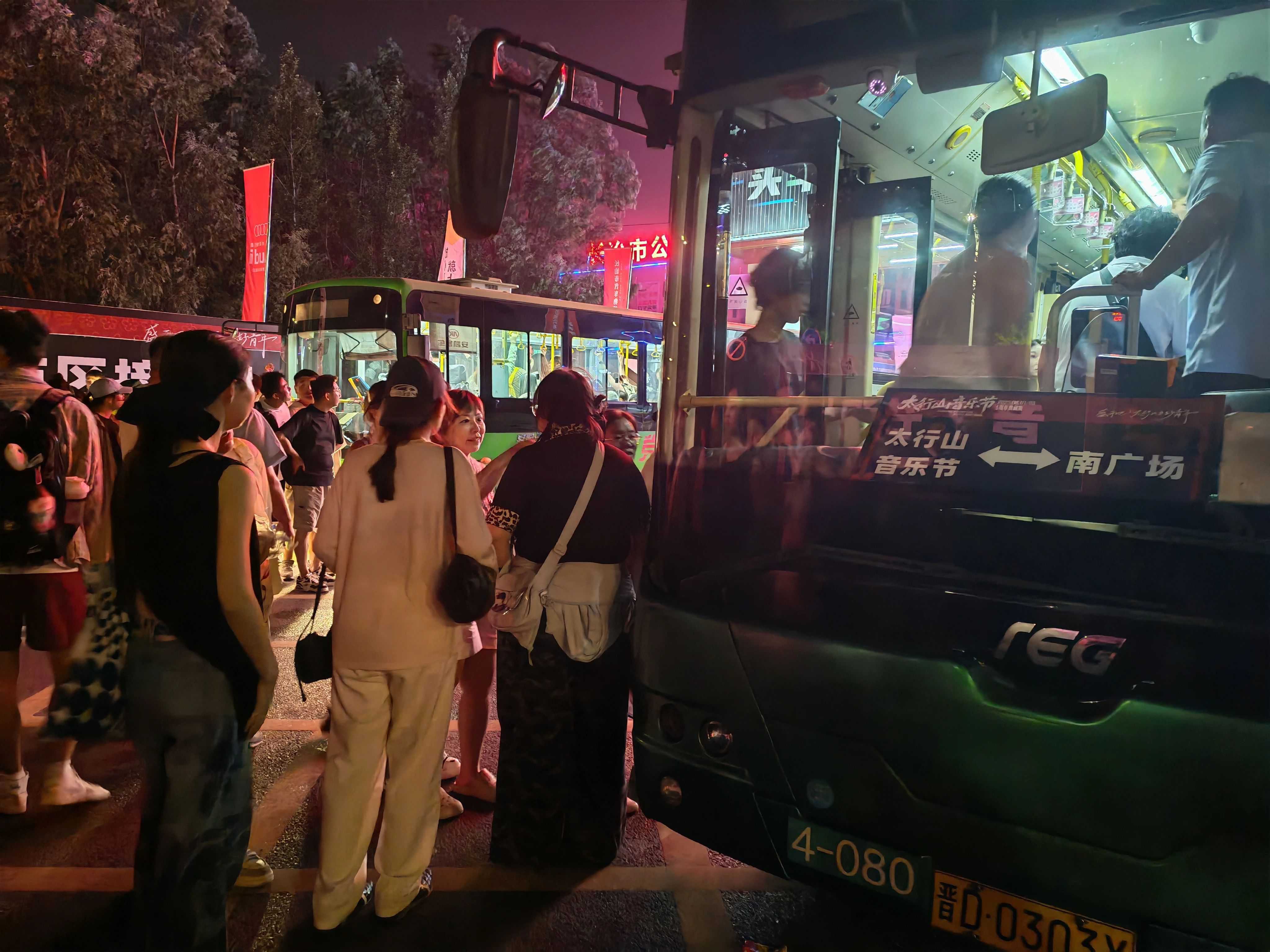 针对散场后,可能面对数万计乐迷短时快速疏散的巨大压力和挑战,长治公交集团开设两条线路,太行山音乐节至万达广场、太行山音乐节至南广场免费公交线路。音乐会期间,集结最大运力,现场秩序维护疏导人员提前到岗。通设置提示牌及现场保障人员的引导和耐心解答,真正做到了让乐迷能快速有效分流、有序乘车,尤其是在客流高峰时段,实施多车同上同发,确保了广大乐迷返程无忧。