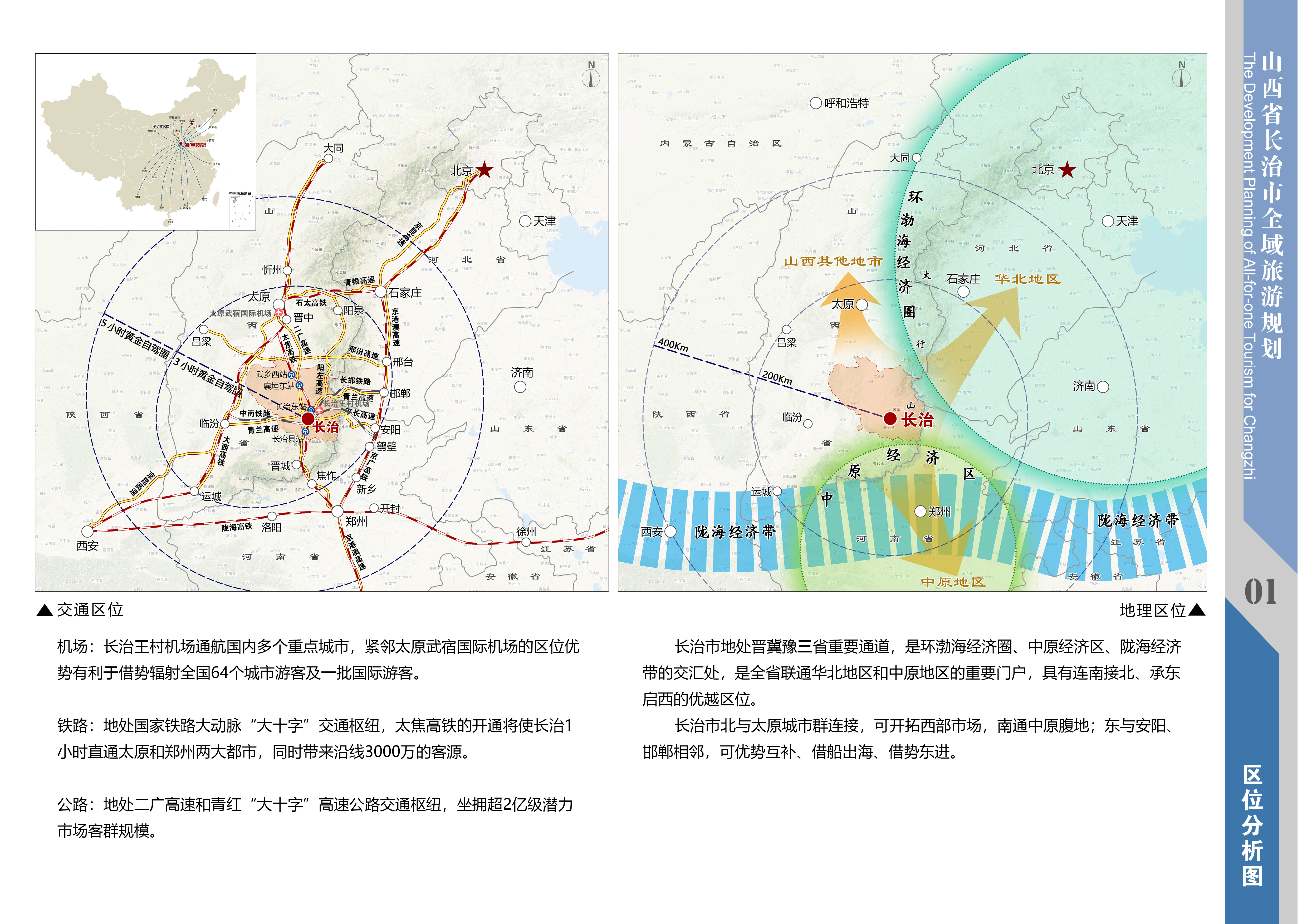 从地理区位来看,长治市地处连接晋冀豫三省的重要通道,是环渤海经济圈、中原经济区、陇海经济带的交汇点,是山西连通华北地区和中原地区的重要门户,具有连南接北、承东启西的优越区位。
