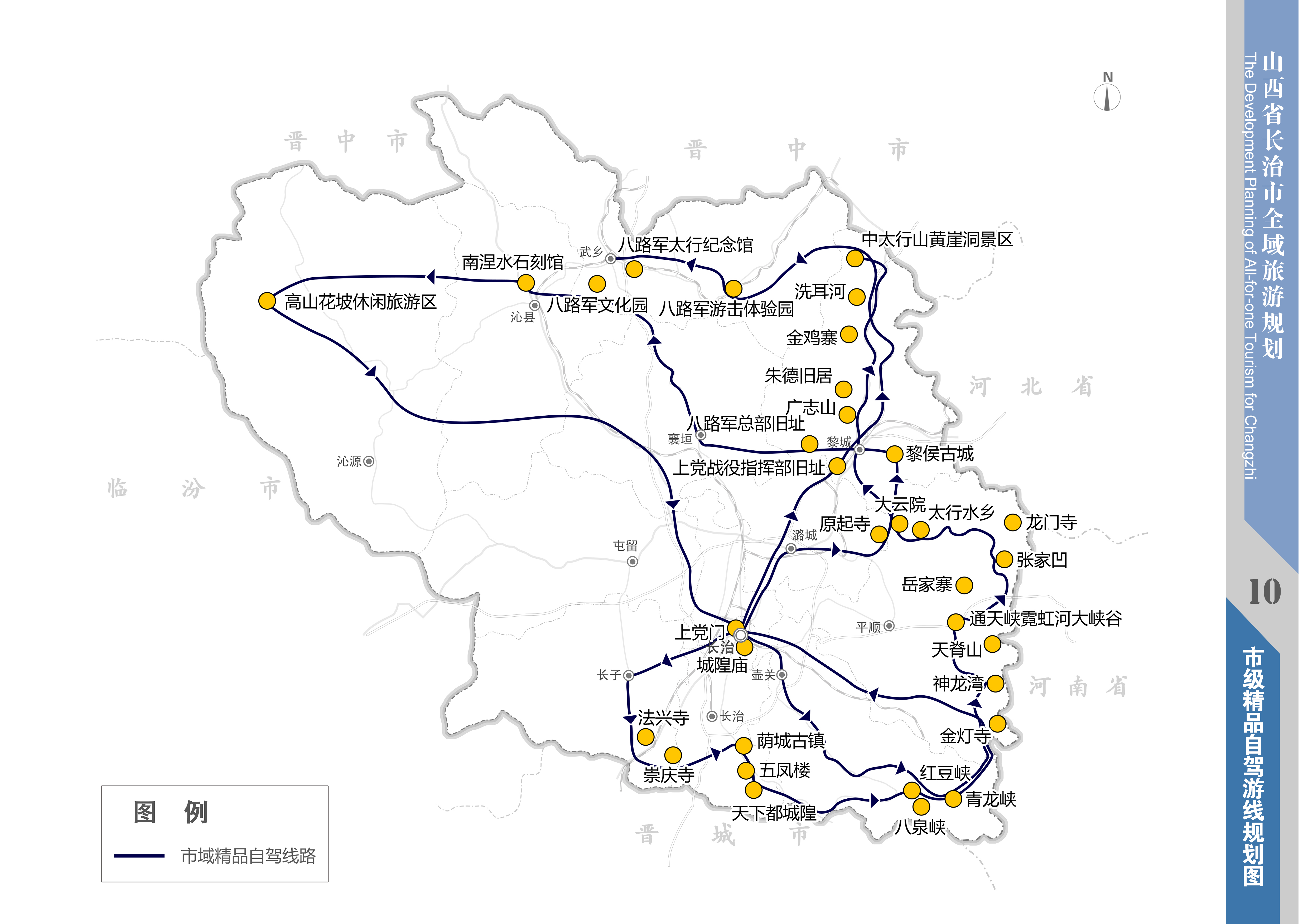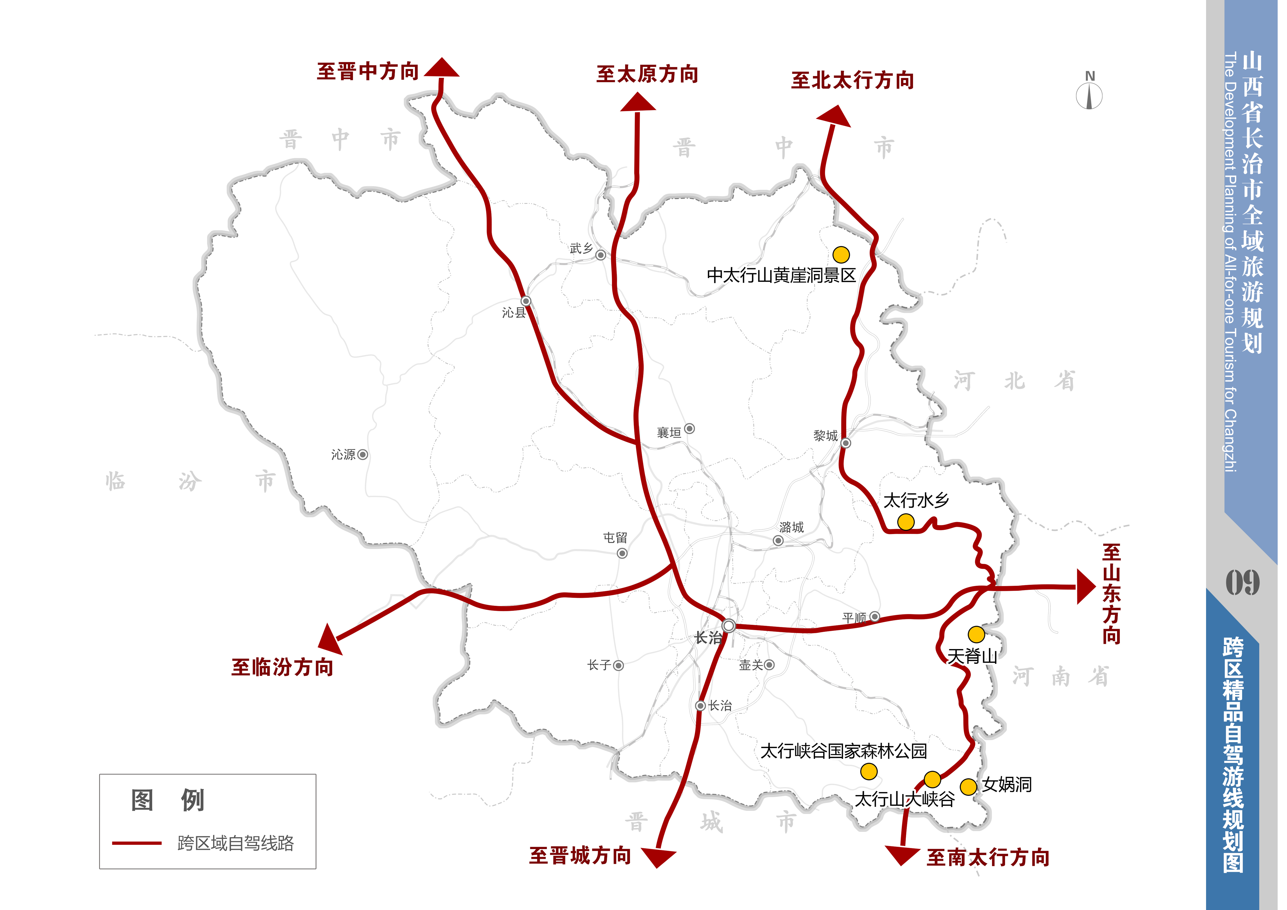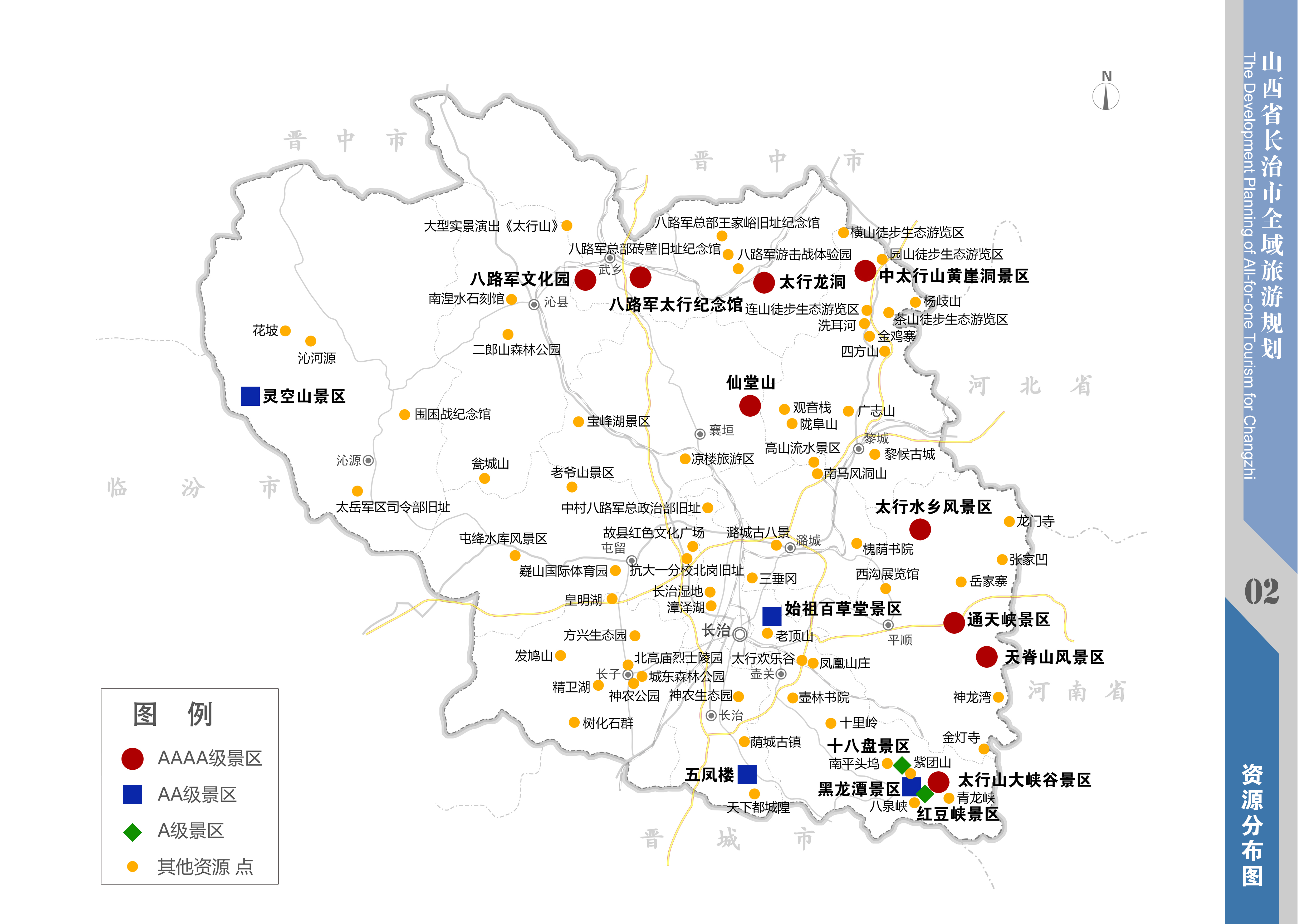 4.四区:太行山水旅游区、上党文化休闲区、红色文化体验区、太岳休闲度假区