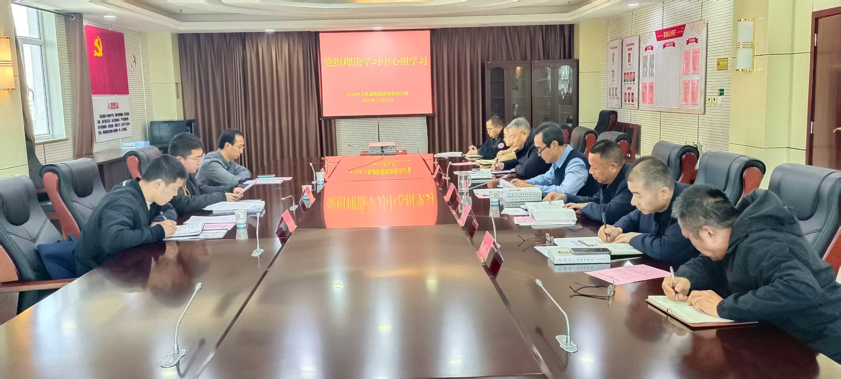 11月21日,市国动办召开党组理论学习中心组学习会议,专题学习党的二十届四中全会精神和《习近平谈治国理政》第五卷相关篇目。市直机关党组理论学习中心组列席旁听第一工作组到会指导工作。