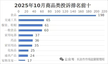 2025年10月份,全市12315机构共受理投诉486件,其中,商品类投诉333件,占投诉总量的70.48%;服务类投诉153件,占投诉总量的29.52%。