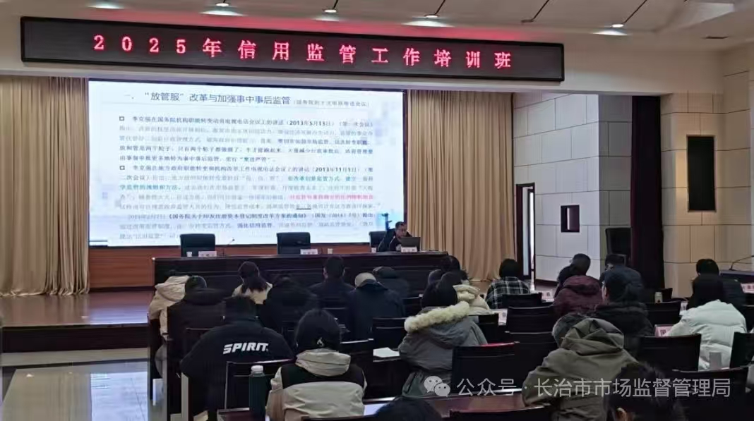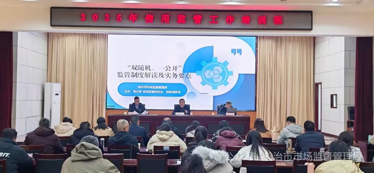 2025年12月1日,长治市市场监督管理局举办全市系统信用监管工作培训班,各县区局分管领导和业务骨干、市局双随机监管科室负责人、市直双随机监管成员单位相关负责人共计60余人参加了培训,此次培训邀请省市场局信用监管处马洁副处长、朔州市场局信用监管科高立新科长专程授课,市局党组成员、副局长陈耀庭作开班动员讲话。