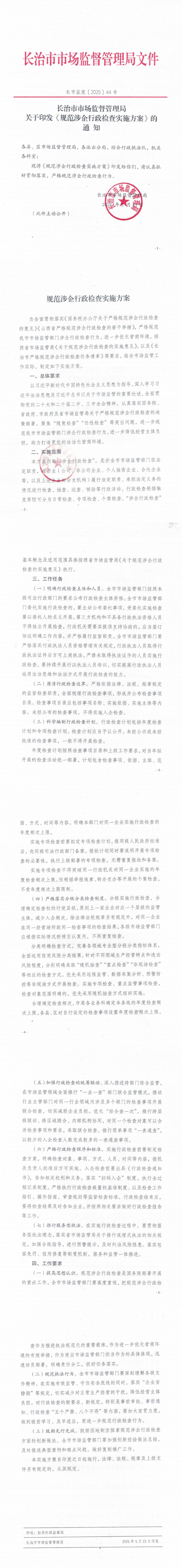 长治市市场监督管理局关于印发《规范涉企行政检查实施方案》的通知