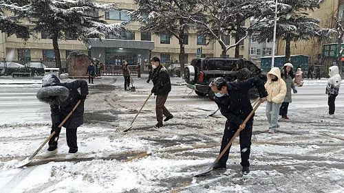 尽管室外气温低至零下,但大家脸上都洋溢着热情,虽然额头渗出细密汗珠,却始终保持高效作业状态。经过近两个小时的奋战,机关院内及周边的积雪被彻底清理干净,开辟出一条安全畅通的 “爱心通道”。