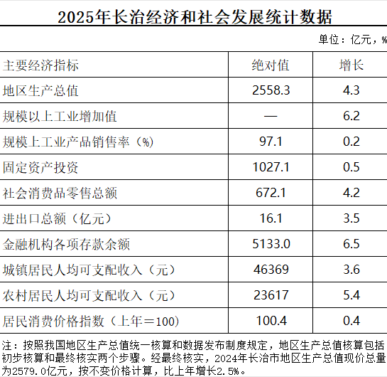2025年长治经济和社会发展统计数据