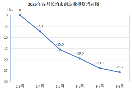 分行业看,石油加工、炼焦及核燃料加工业投资同比下降80.0%,下拉制造业投资19.4个百分点;非金属矿制品业同比下降57.6%,下拉制造业投资6.5个百分点;金属制品业同比下降66.4%,下拉制造业投资3.3个百分点;计算机、通信和其他电子设备制造业同比下降13.6%,下拉制造业投资2.8个百分点。从县区看,12个县(区)中有6个同比下降,降幅较大的有潞州区、长子县、沁源县、黎城县,分别下降37.8%、47.2%、57.6%、66.9%。
