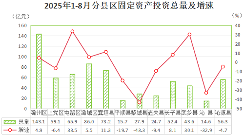 从增速看,县区投资增速“六增六降”。增幅较高的是屯留区33.5%、长子县30.1%、襄垣县11.3%;降幅较大的是平顺县-19.7%、沁县-32.9%、黎城县-43.3%。增速最高的屯留区与增速最低的黎城县相差76.8个百分点。