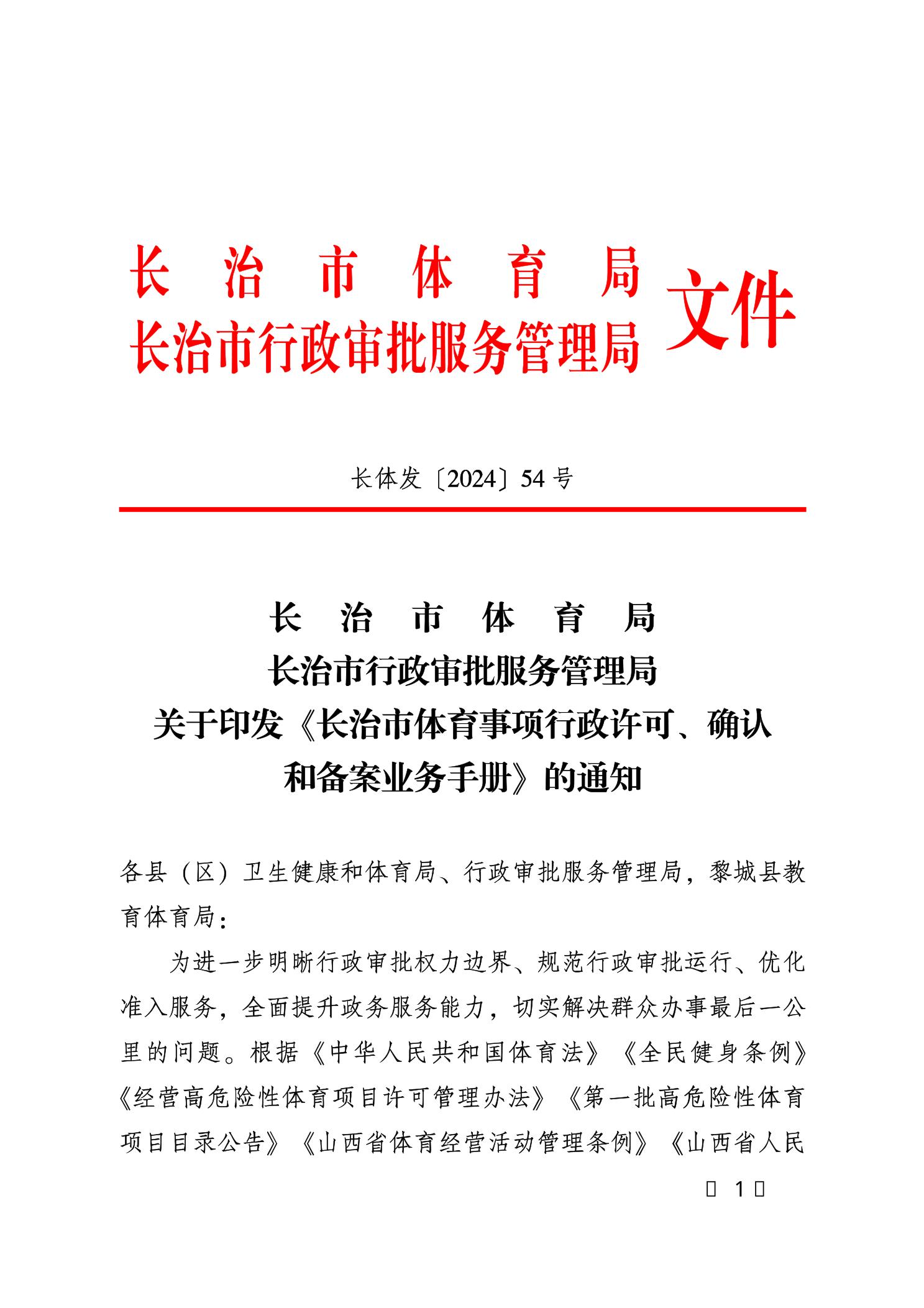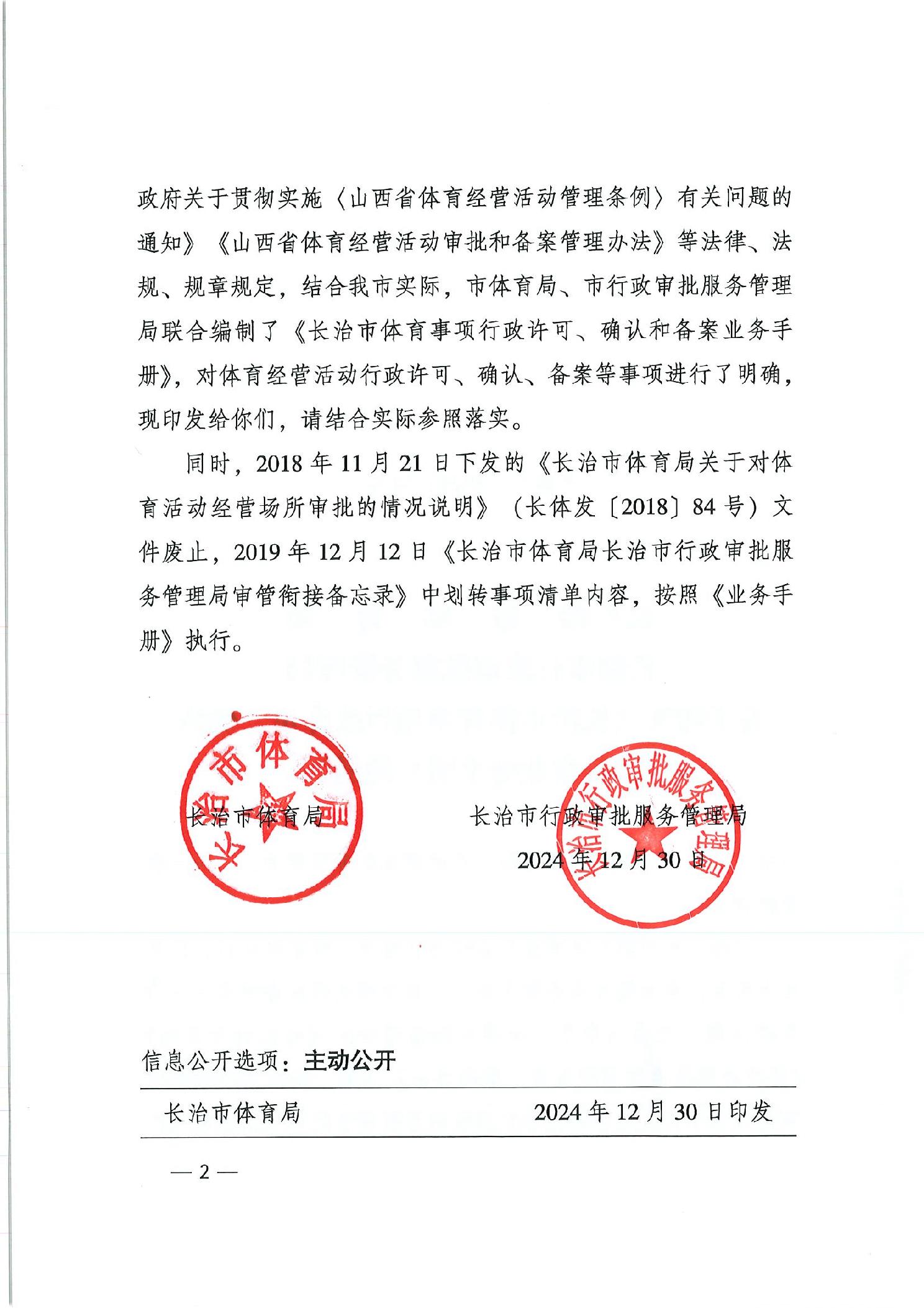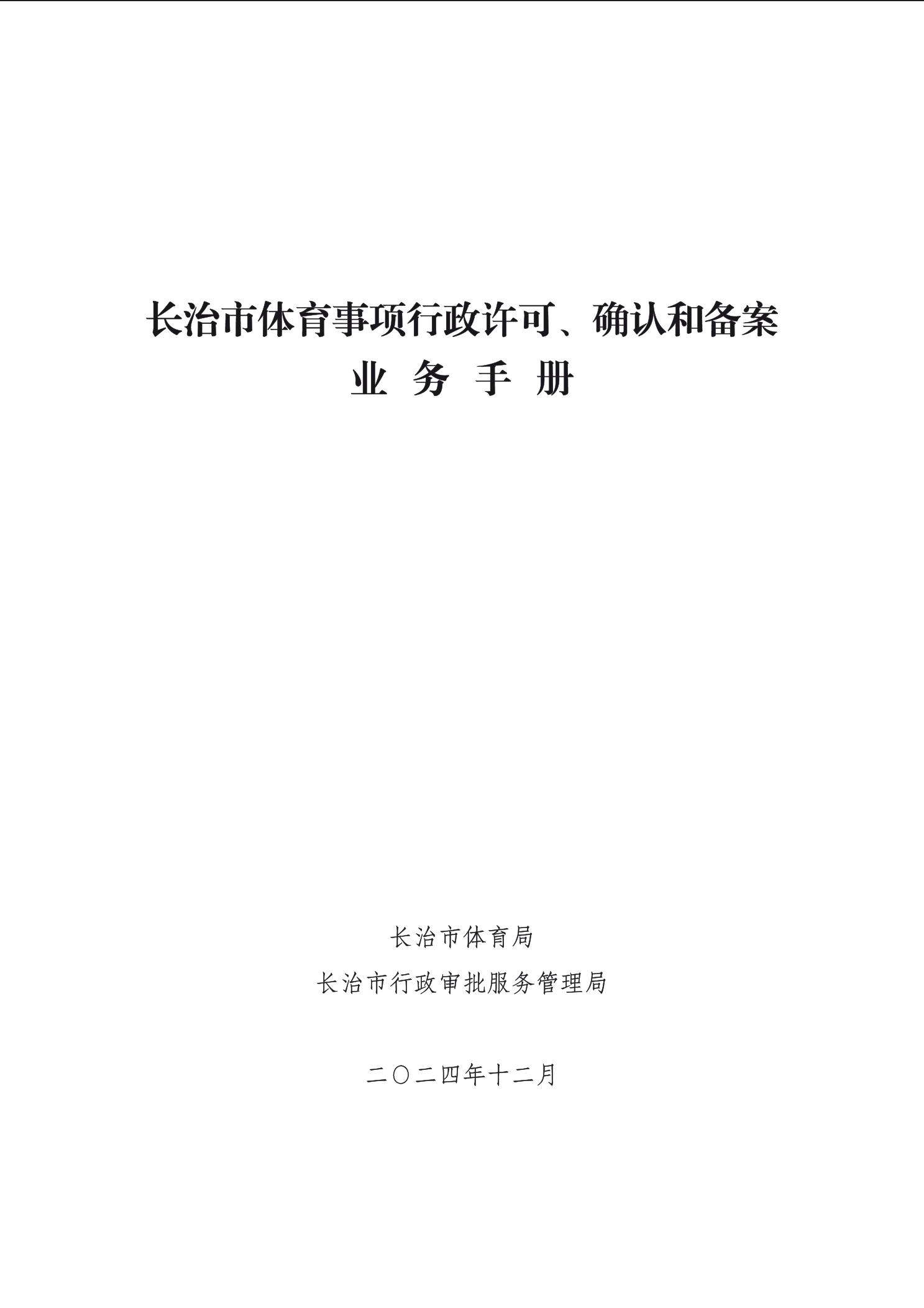 长治市体育局 长治市行政审批服务管理局 关于印发《长治市体育事项行政许可、确认和备案业务手册》的通知