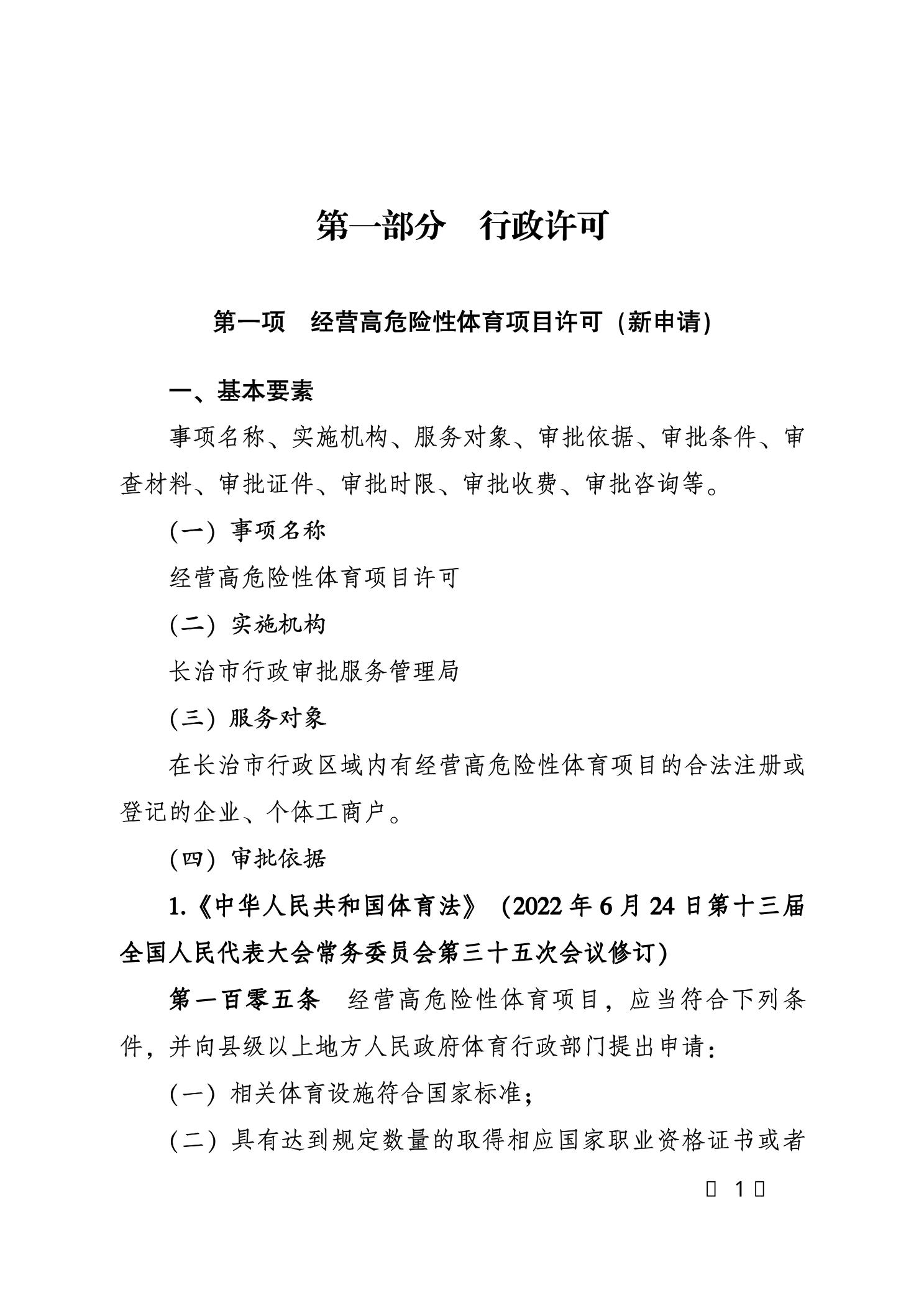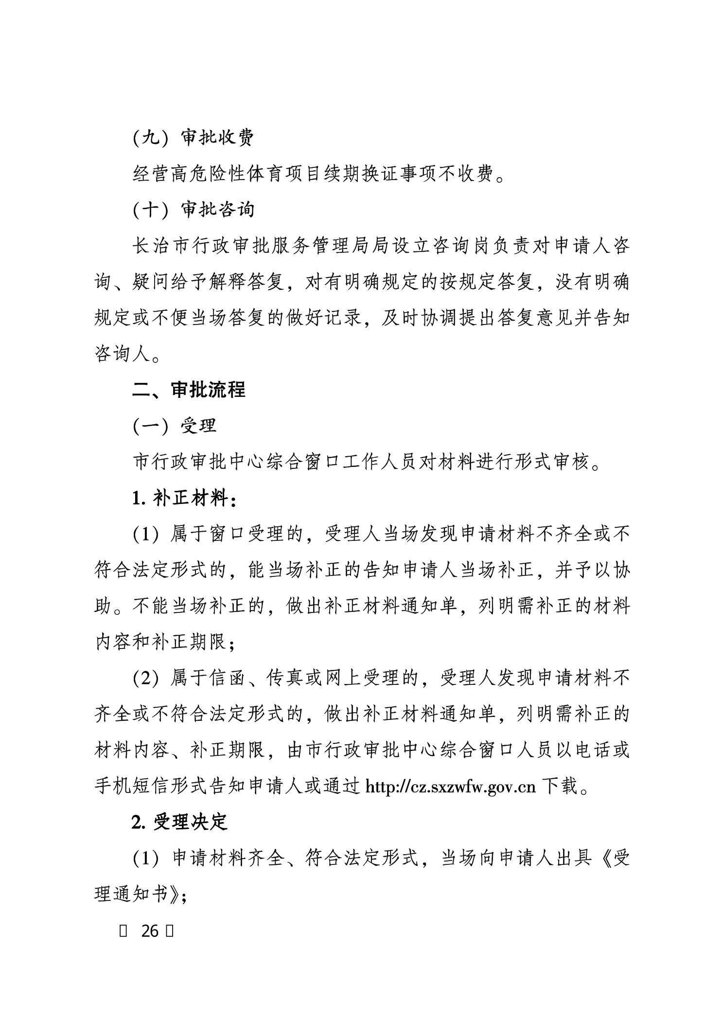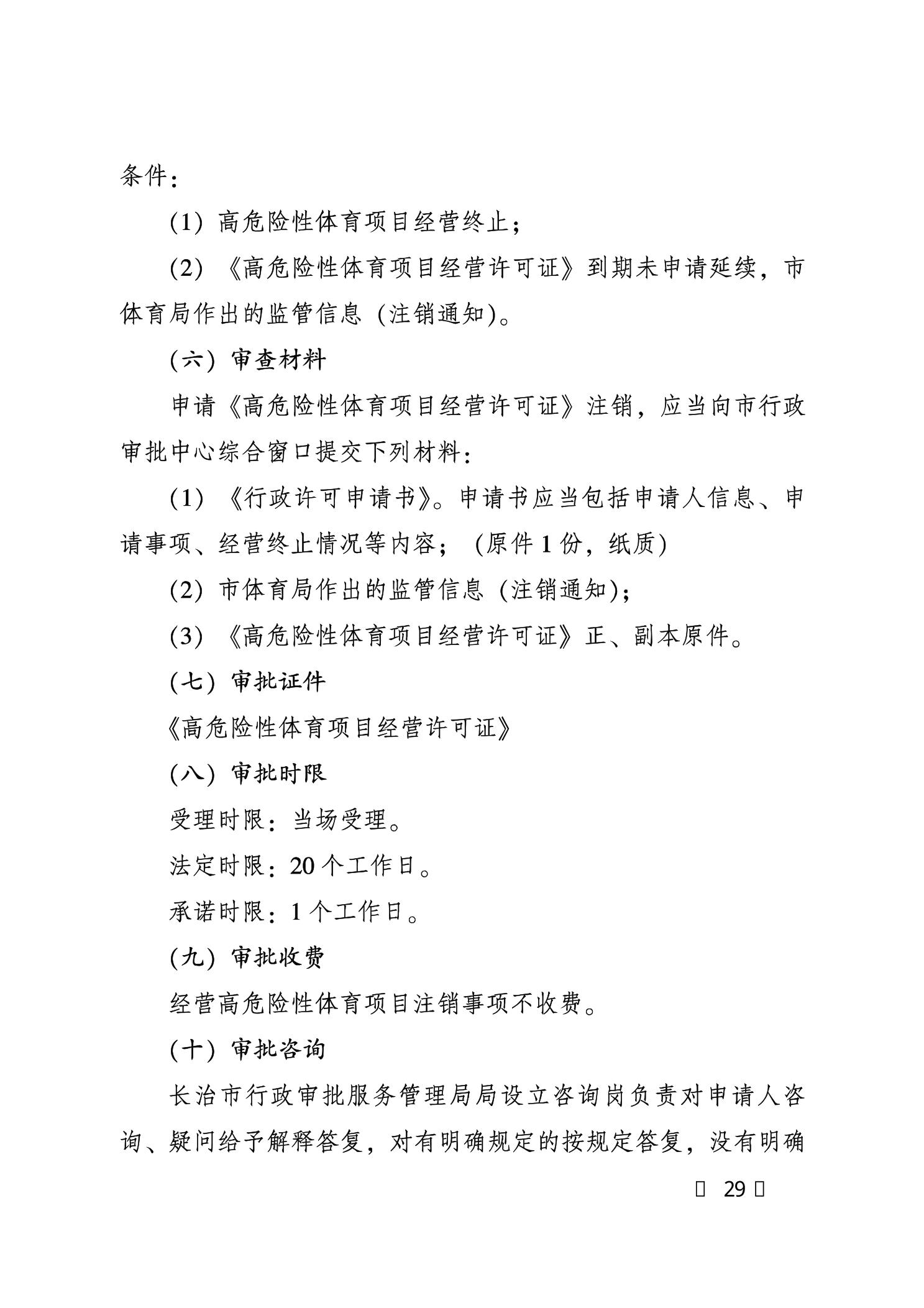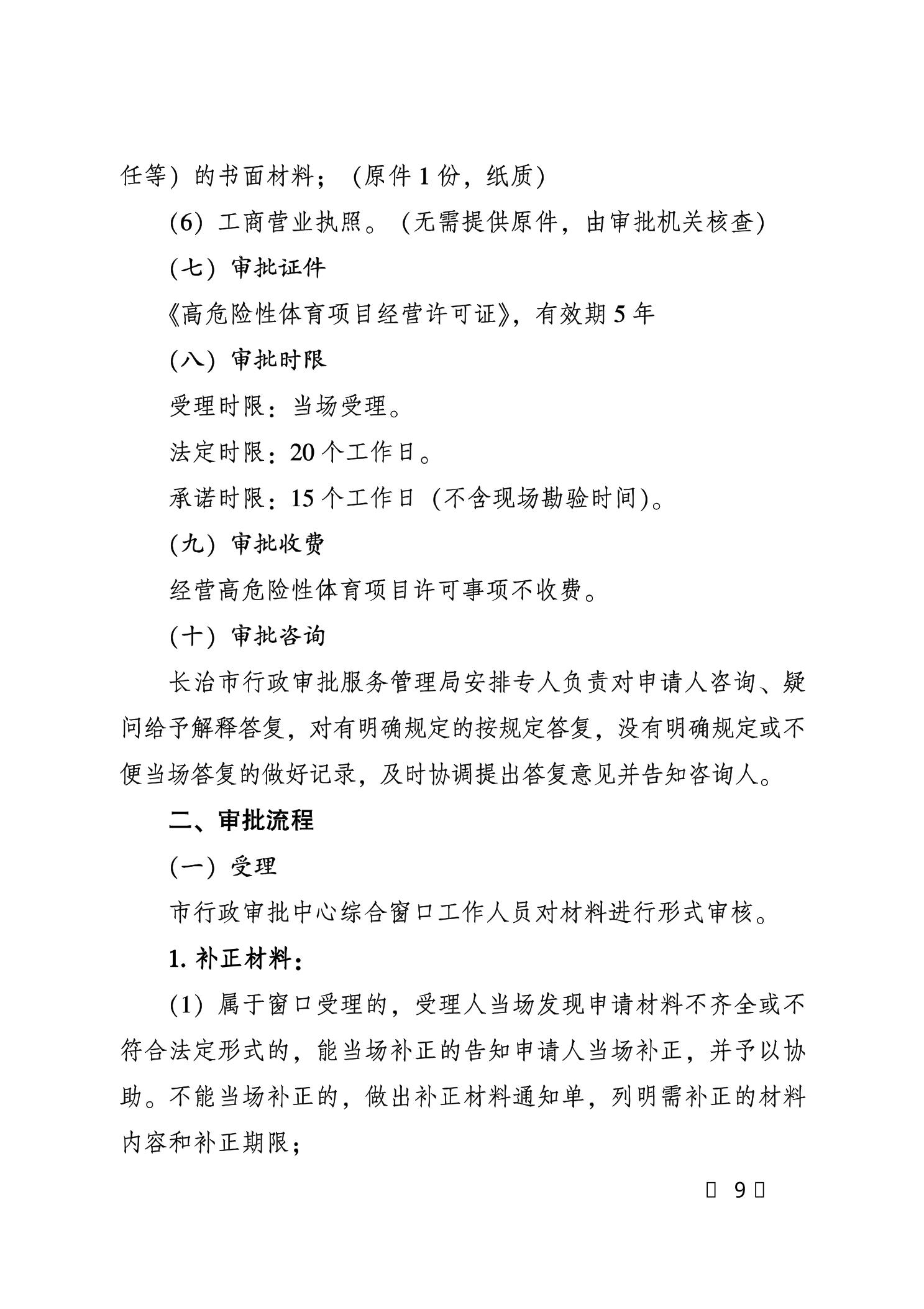 长治市体育局 长治市行政审批服务管理局 关于印发《长治市体育事项行政许可、确认和备案业务手册》的通知