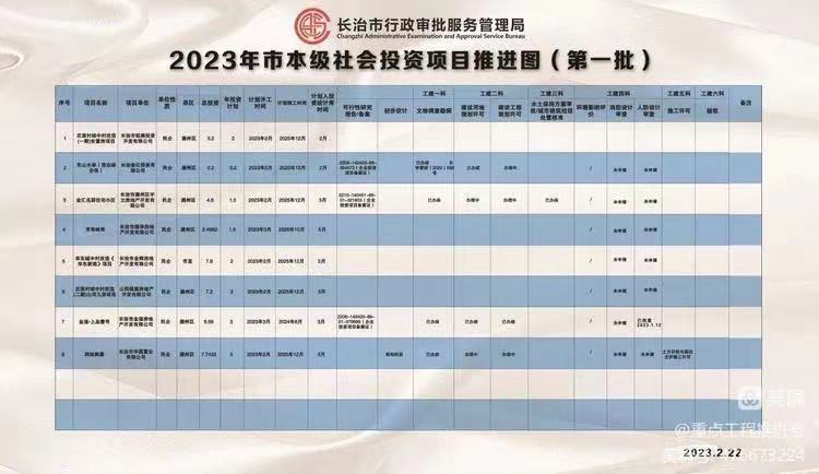 会议听取了市局相关业务科室负责同志对市本级重点工程建设推进情况汇报。截至目前:东山水岸(商业综合体)项目工程规划批前公示中;庄里村城中村改造(一期)安置房项目用地规划批前公示中;华东城中村改造《华东新苑》项目已在潞州区办理拿地即开工手续;庄里村城中村改造(二期)山河九里项目已在潞州区办理拿地即开工手续、用地规划批前公示中;石子河上游(东外环—原石子河水库)生态修复综合治理工程水土保持方案报告已办结。