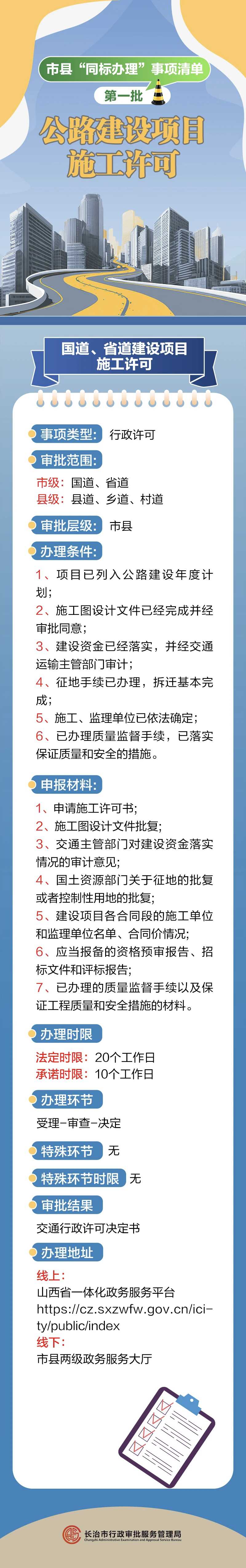 市县“同标办理”事项清单(第一批)——公路建设项目施工许可