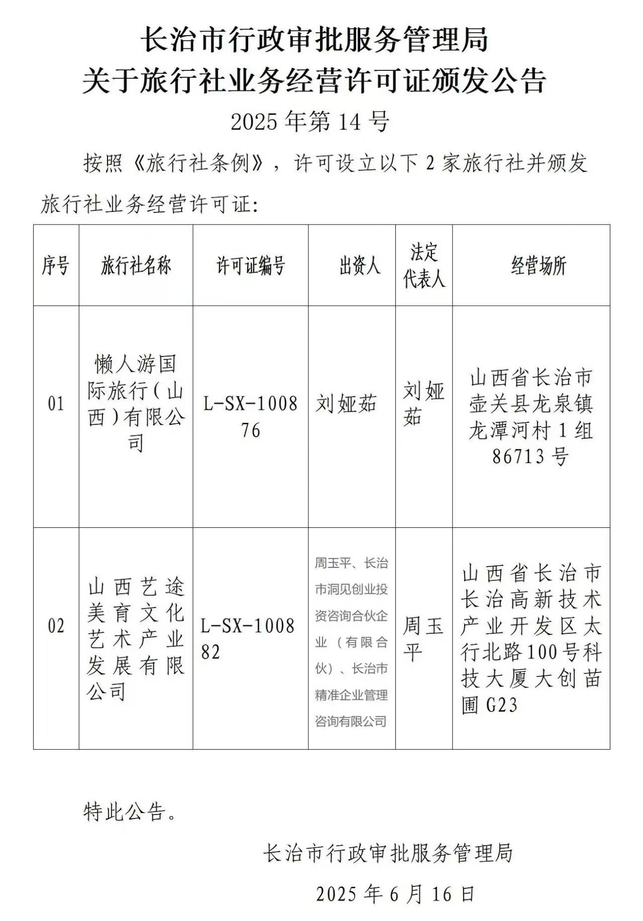 关于旅行社业务经营许可证颁发公告