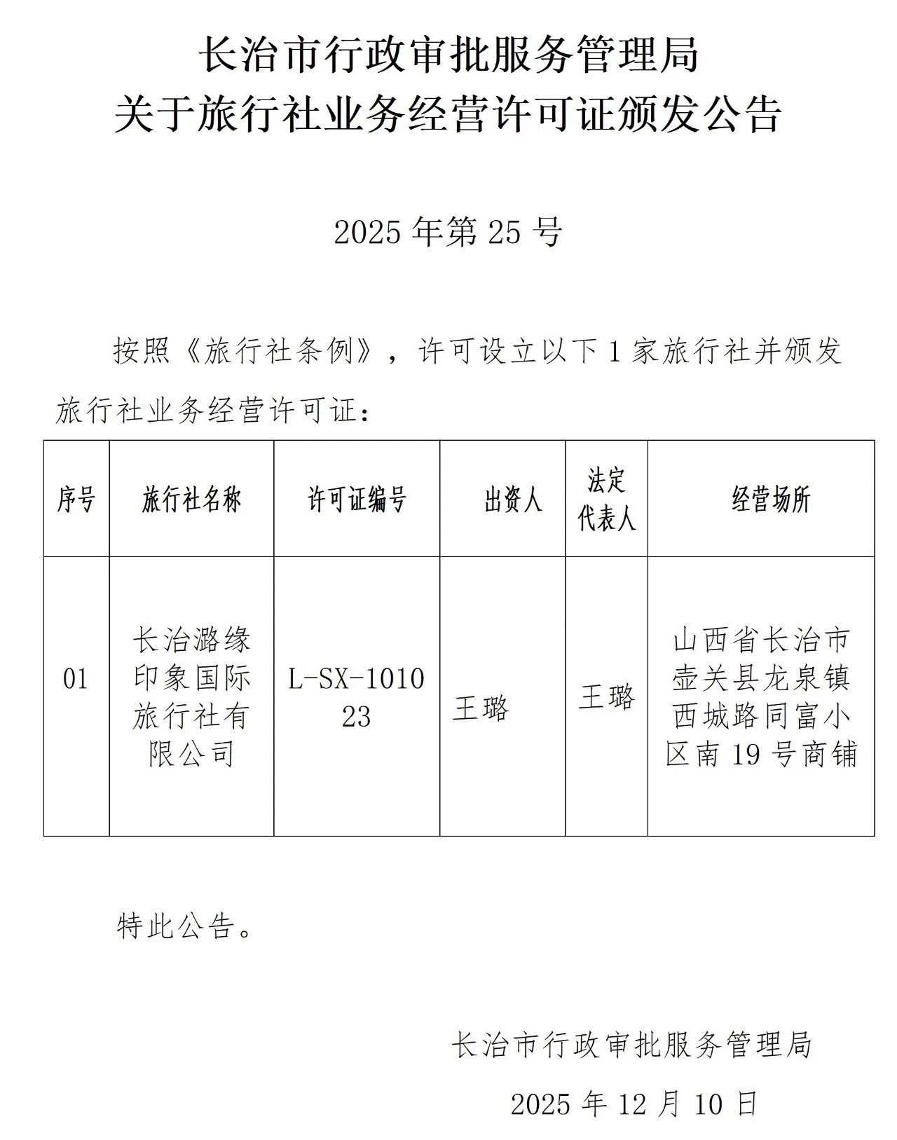 关于旅行社业务经营许可证颁发公告