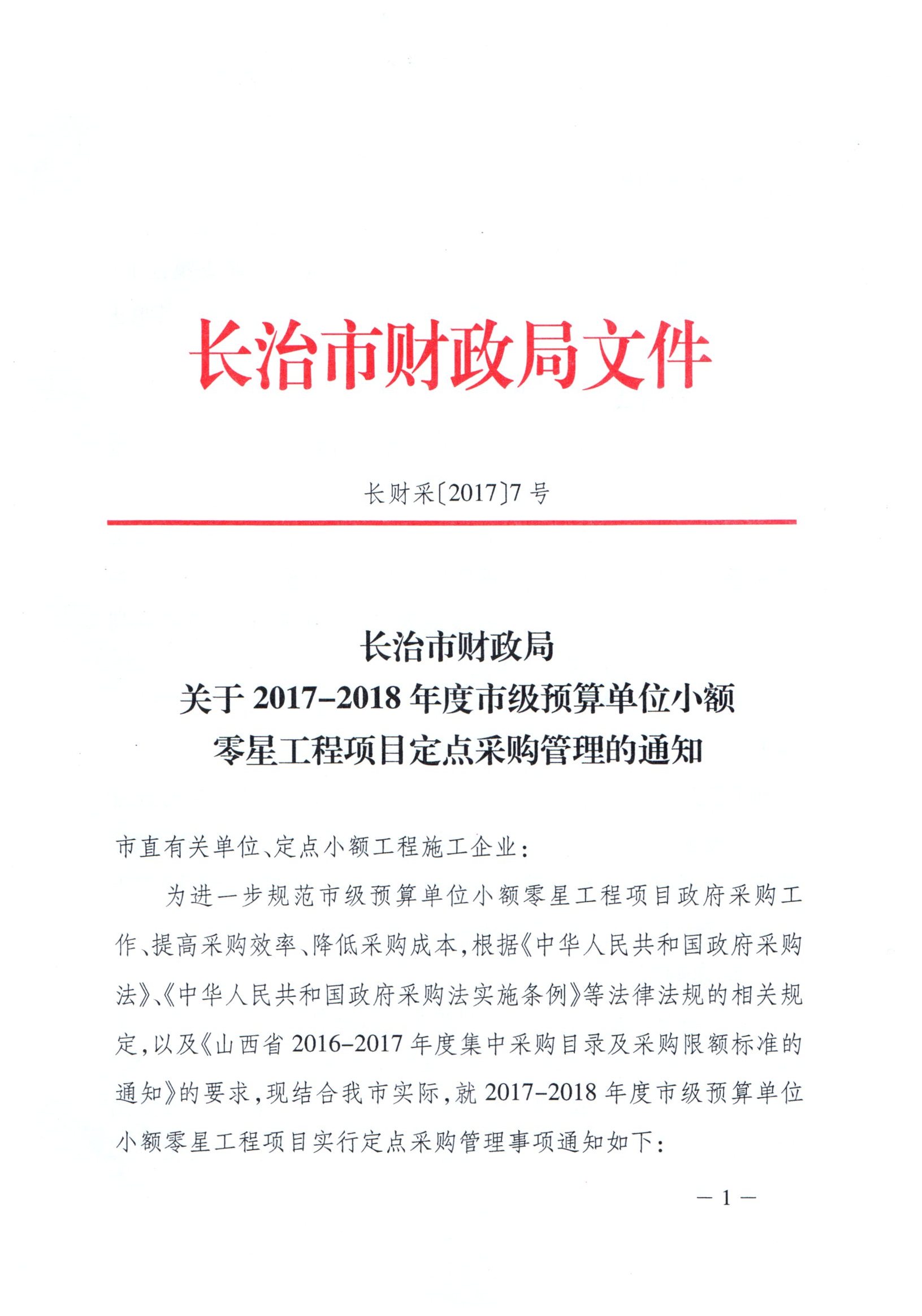 长财采〔2017〕7号(定点工程)