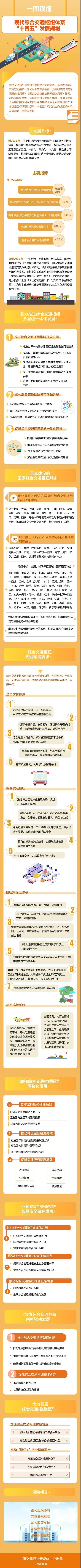 近日,交通运输部、国家铁路局、中国民用航空局、国家邮政局、中国国家铁路集团有限公司联合印发了《现代综合交通枢纽体系“十四五”发展规划》(简称《枢纽规划》)。《枢纽规划》是首次由多部门联合印发的综合交通枢纽类规划,具有很强的创新性和里程碑意义,将推动我国综合交通枢纽体系发展迈上新台阶。