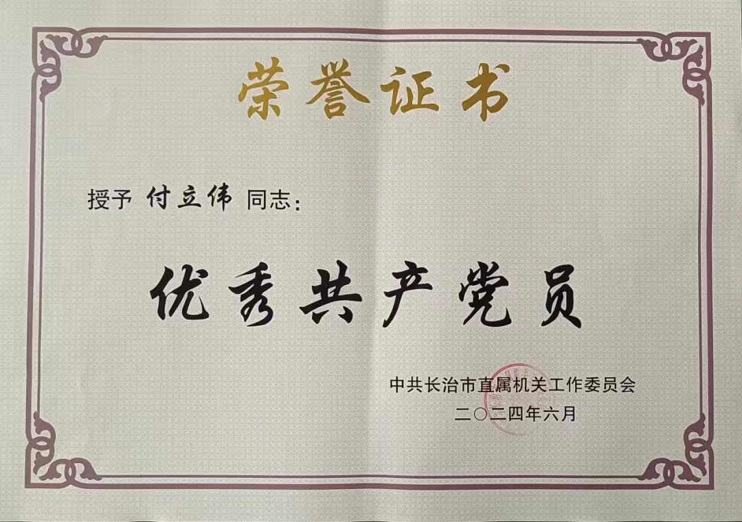 七一前夕,中共长治市直属机关工作委员会对市直机关涌现出的优秀共产党员、优秀党务工作者和先进基层党组织进行了表彰。市科技局市引智服务中心党支部、市科技创新发展研究院办公室主任付立伟同志分别荣获“先进基层党组织”“优秀共产党员”称号。