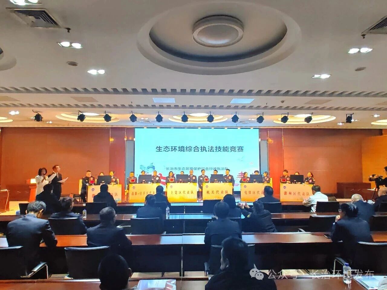 12月30日,为持续加强生态环境保护综合行政执法队伍规范化建设,全面提升执法人员业务素养和实战能力,充分展现生态环境执法铁军的过硬作风与良好风貌,长治市生态环境局联合市总工会共同举办生态环境综合执法技能竞赛。市生态环境局党组成员、副局长郭响平,市生态环境局党组成员、市生态环境保护综合行政执法队队长郭联宏,潞城区人民政府副区长张永刚,市总工会相关负责同志出席活动。