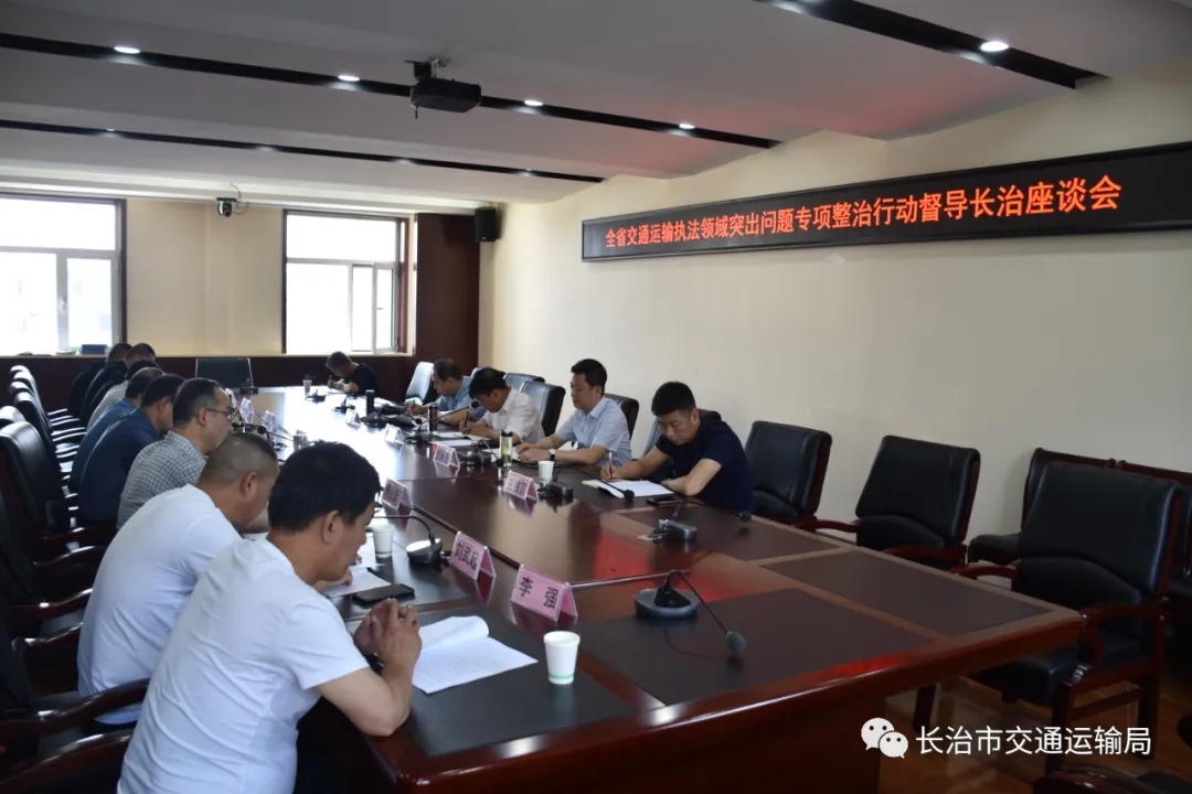 督导组在市交通运输局组织召开了有长治交通运输执法局、公路分局、交通运输综合行政执法队及相关货运企业负责人参加的座谈会,认真听取了交通运输执法领域突出问题专项整治工作的进展情况汇报。还深入长治市一运、鹏博运输等交通运输企业,与企业负责人、货车司机进行了座谈交流,了解企业经营现状及诉求,征询对长治市交通运输行政执法工作的意见和建议。