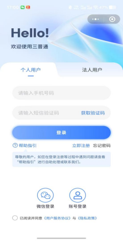 1.在微信或支付宝搜索“三晋通”小程序,未注册用户需先进入屏幕下方“我的”点击立即注册进行注册,已注册的用户直接登录。