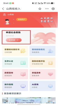 有困难找“晋心救”,手机申请不用愁!低保、特困怎么报?“晋心救”小程序来教您!为了让困难群众少跑腿、信息多跑路,确保符合救助条件的家庭和个人能及时获得政府帮扶,6月5日,社会救助小程序“晋心救”在我市正式上线。群众遇到困难,足不出户,动动手指就能申请社会救助。即使您不熟悉智能手机操作,让身边的亲友、邻居、村干部、社区或乡镇工作人员都能帮您办理,让温暖触手可及。这份详细使用指南,请收好!