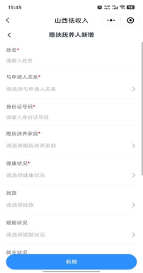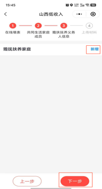 5.点击下一步,进入赡扶抚养人信息填报,点击新增,按照要求添加所有赡扶抚养人信息。