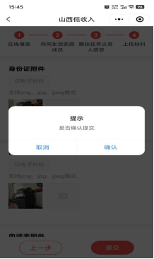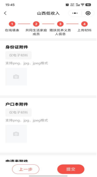 6.点击下一步,依次上传身份证、户口本、申请表附件,确认提交后,提示申请成功即完成申请。