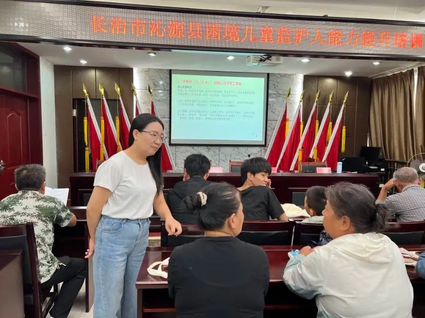 为深入贯彻落实国家关于困境儿童保障工作的有关要求,切实提升孤儿、事实无人抚养儿童监护人的照护能力与责任意识,在长治市民政局的指导下,由长治市未成年人保护中心主办、长治市惠民社会工作服务中心承办的困境儿童监护人综合能力提升培训于8月28日—29日顺利开展。培训覆盖壶关县、武乡县、沁源县三个县区,共开展三场专题培训,惠及辖区内150余名孤儿、事实无人抚养儿童的监护人,为他们带去政策支持和照护技能的双重赋能。