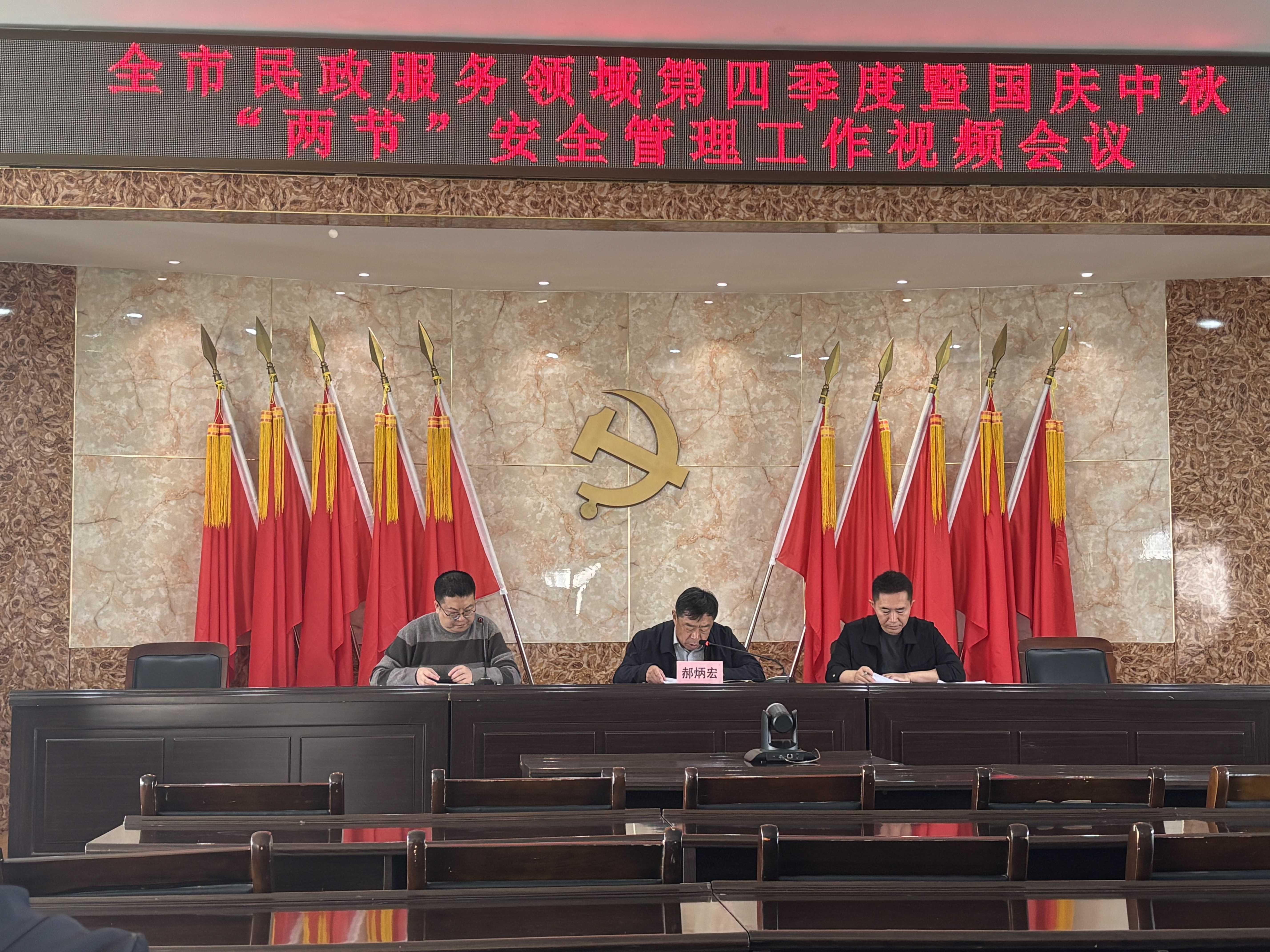 9月29日,全市民政服务领域第四季度暨国庆中秋“两节”安全管理工作视频会议召开。会议深入贯彻落实市委、市政府和省民政厅关于安全生产工作部署要求,分析当前民政领域安全形势,安排部署第四季度特别是“两节”期间安全防范重点工作,全力保障民政服务对象生命财产安全和民政服务机构平稳运行。