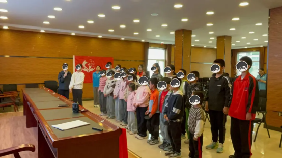 活动最后,社工组织孩子们共同进行庄严宣誓,在满满的仪式感中树牢责任感和热爱祖国、热爱和平的意识。