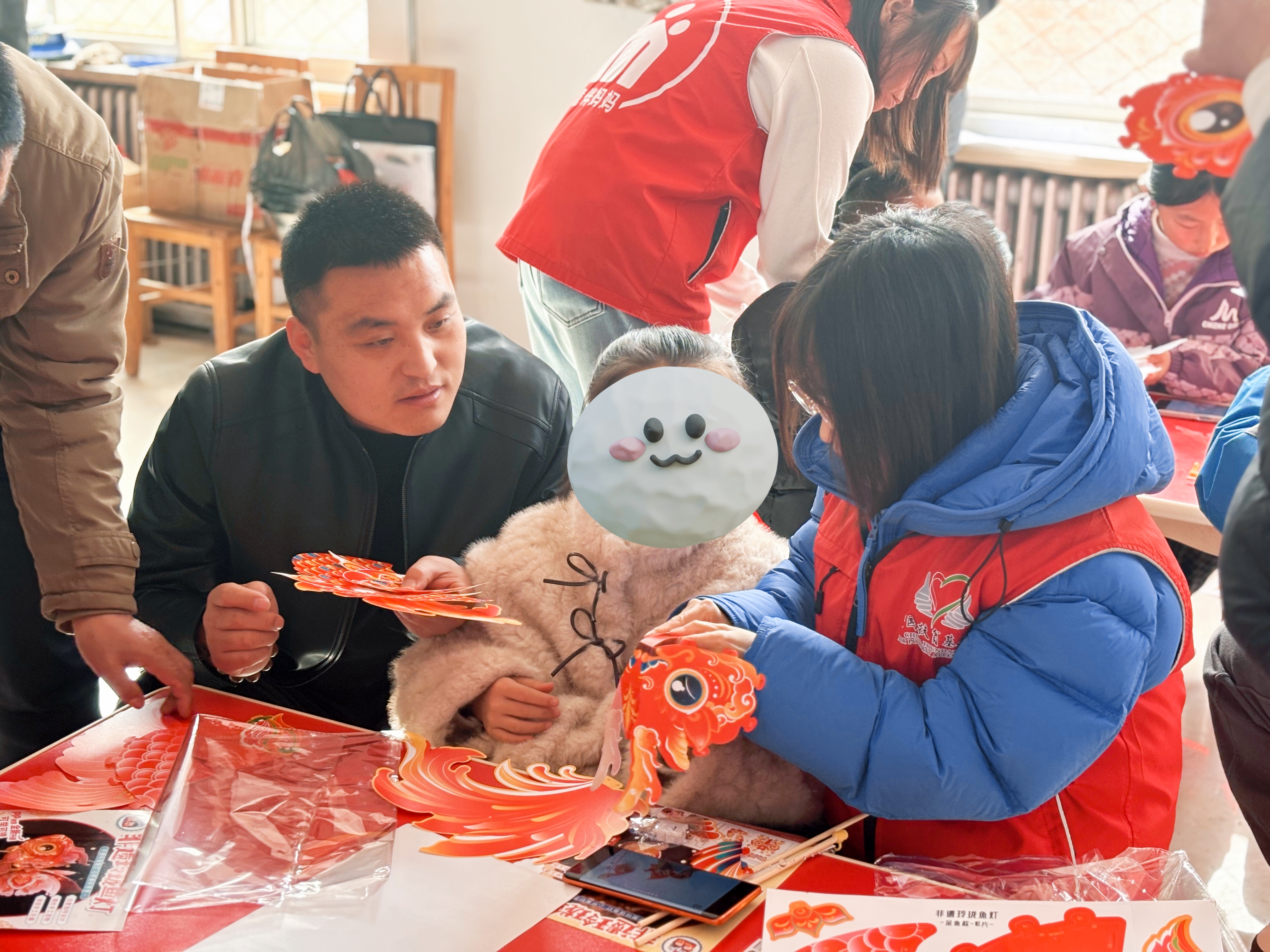 闯关成功后,孩子们用集满印章的卡片兑换了精美的“鱼灯材料包”,在党员志愿者和家长的陪伴下,开始了鱼灯的制作。志愿者们俯身协助年龄较小的孩子拼接骨架,与他们轻声交流,分享元宵的喜悦。当一盏盏灵动的鱼灯被点亮,孩子们兴奋地在场地里奔跑嬉戏,摇曳的灯光映照着张张笑脸,将活动氛围推向了最高潮。