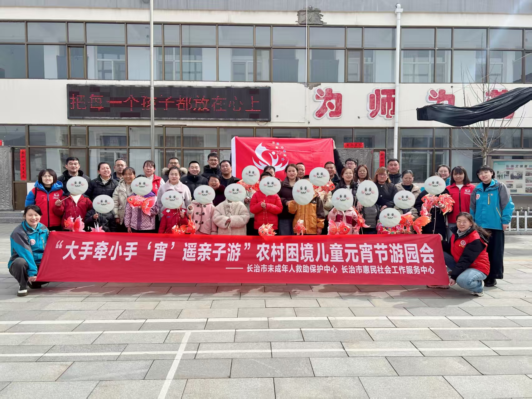 为弘扬中华优秀传统文化,切实做好农村困境儿童关爱工作,营造欢乐祥和的节日氛围,在元宵佳节之际,2026年3月3日,由长治市社会福利和捐助救助中心第三党支部与中共长治市社会组织委员会社工类社会组织联合党支部牵头,联合平顺县张井村、中五井村、城关村童伴之家,共同举办了“大手牵小手,‘宵’遥亲子游”农村困境儿童元宵节游园会。来自张井村、中五井村、城关村的15对困境儿童及其家长(或兄弟姐妹)共计30余人参加了本次活动。