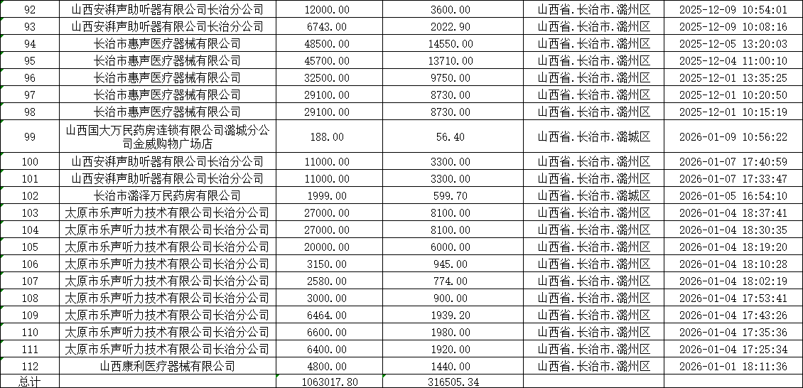 根据《山西省民政厅山西省发展和改革委员会山西省财政厅山西省商务厅关于印发<2025年山西省实施居家适老化改造产品消费补贴"晋孝焕新"行动方案>的通知》(晋民函〔2025〕68号)要求,经第三方机构初审、复审,市民政局核实,现将2025年“晋孝焕新”活动期间通过审核的订单补贴资金明细进行公示。补贴资金涉及销售主体12家,订单112笔,共计316505.34元,拟通过中国工商银行股份有限公司长治延安中路支行进行拨付,具体信息详见附件。本次公示时间从2026年1月20日至2026年1月24日。公示期间,对公示内容如有异议,可通过电话或电子邮件形式向市民政局反映。反映情况时请提供联系方式和所反映具体事项的证明材料。