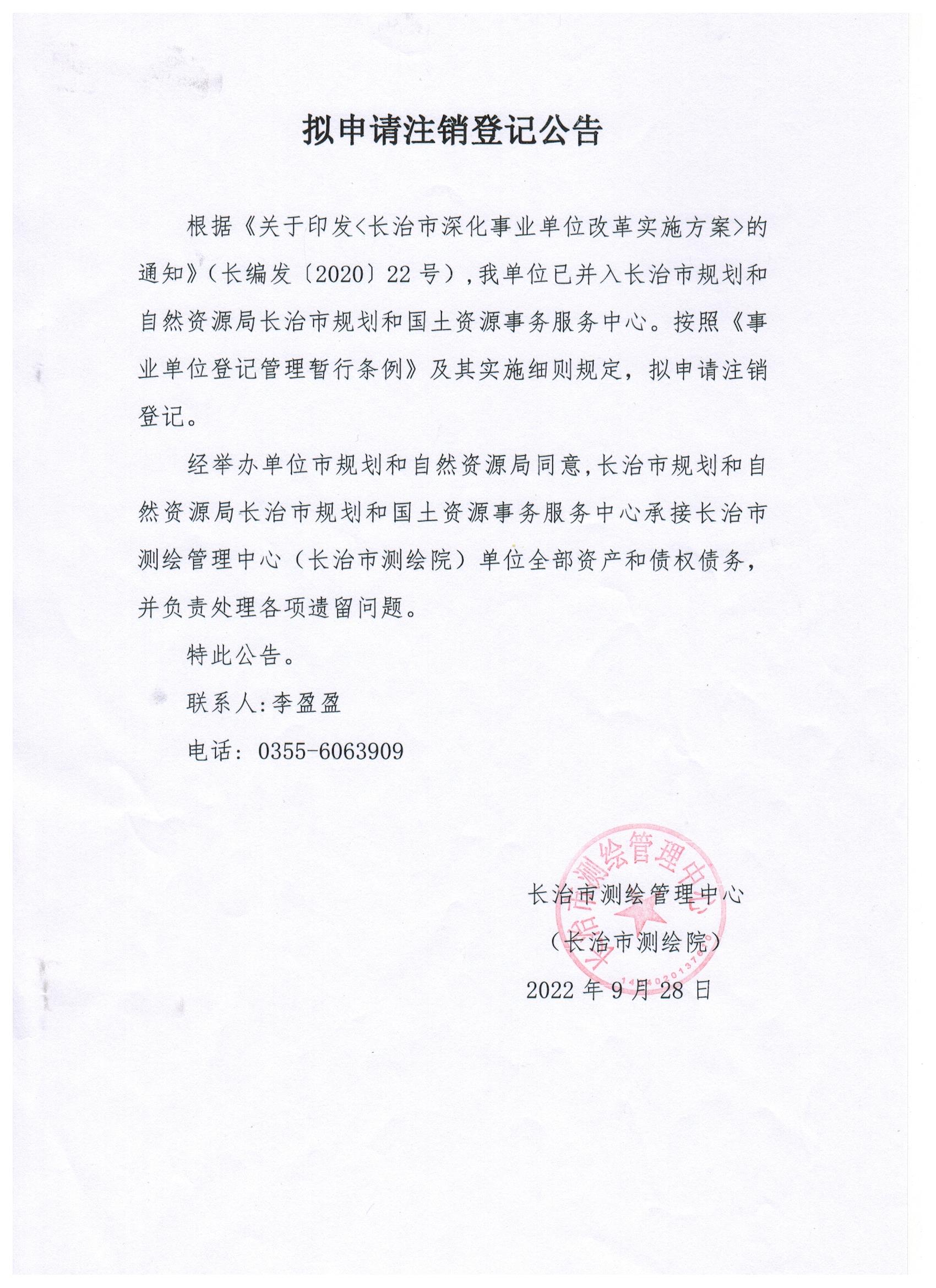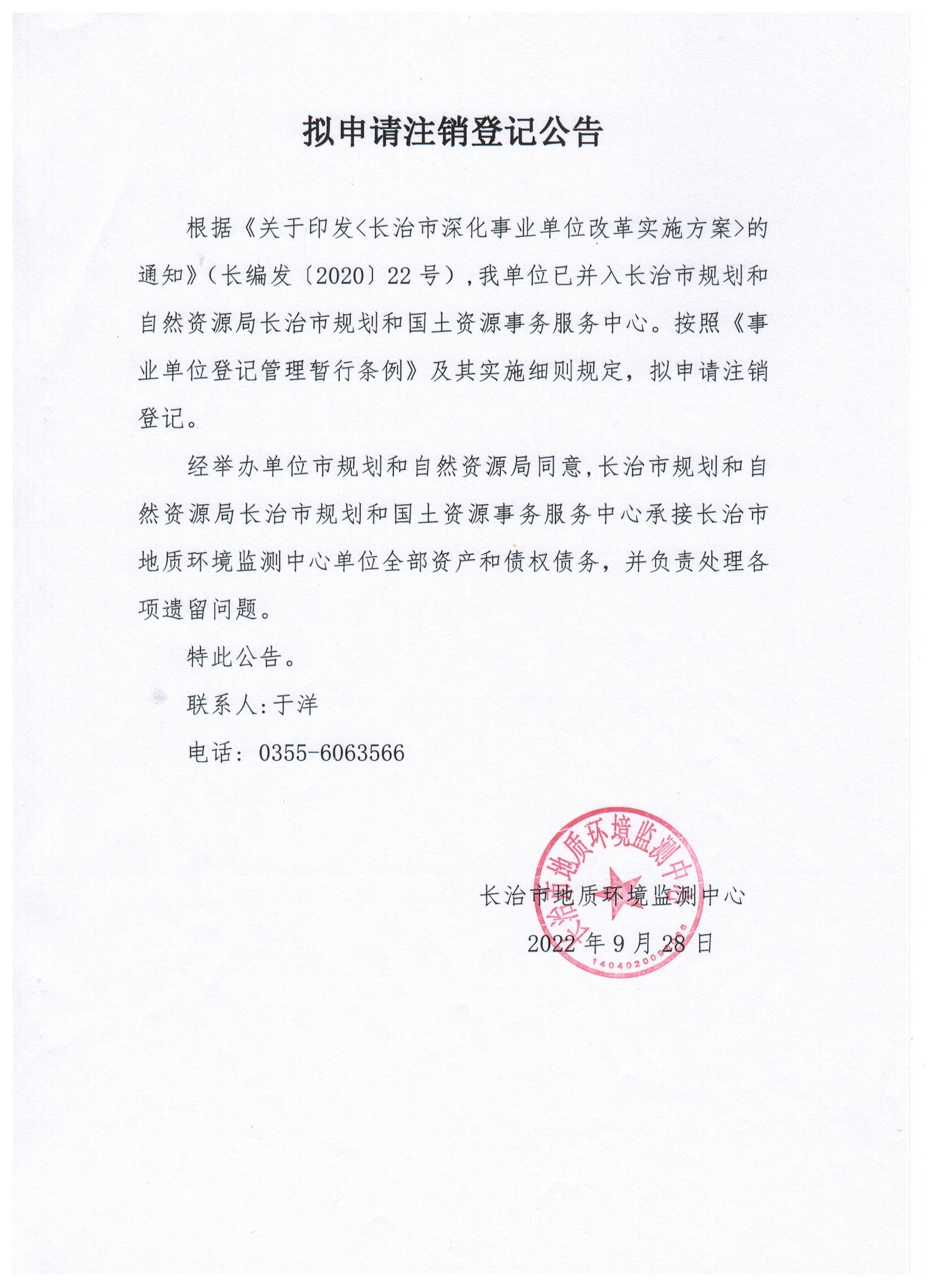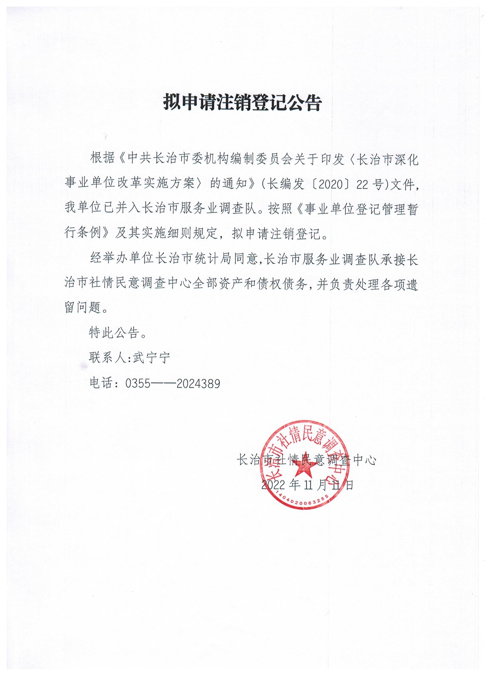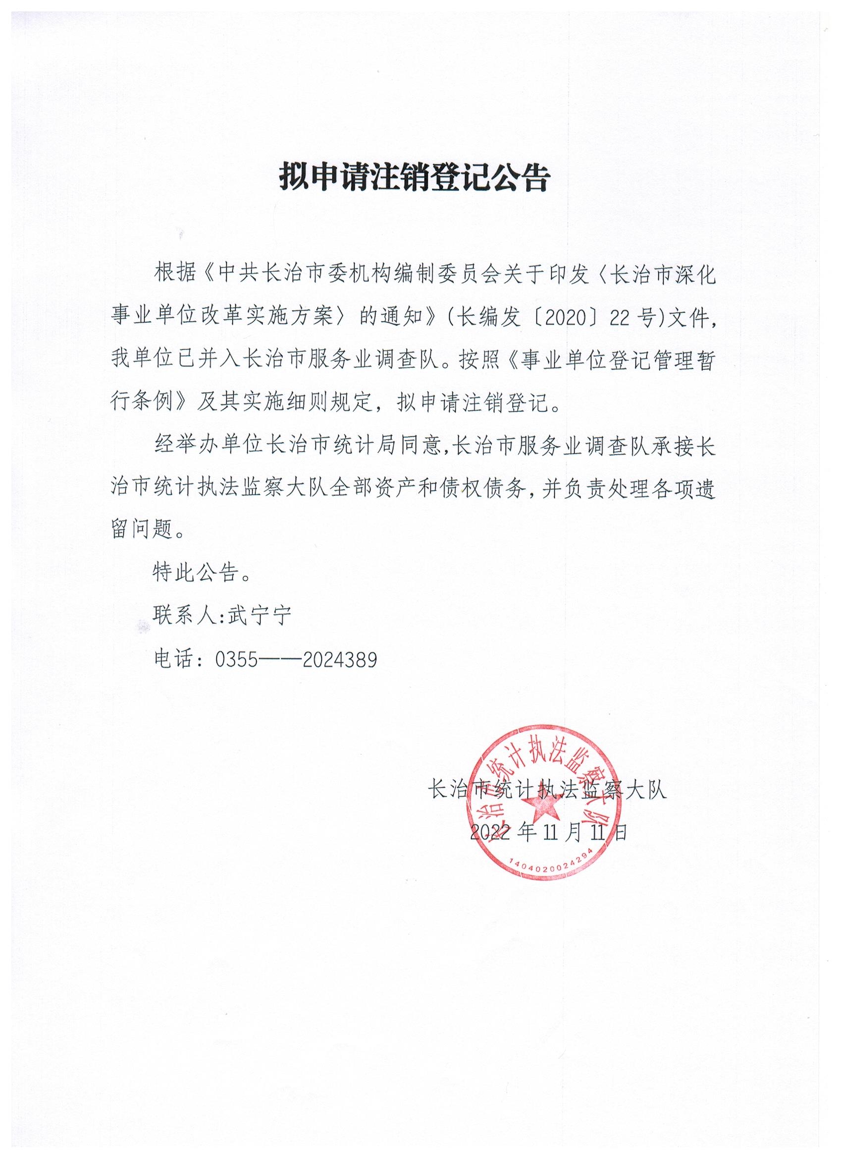 现有长治市统计教育考试管理中心、长治市统计数据管理中心等11家事业单位法人申请注销登记,现发布其拟申请注销登记公告。