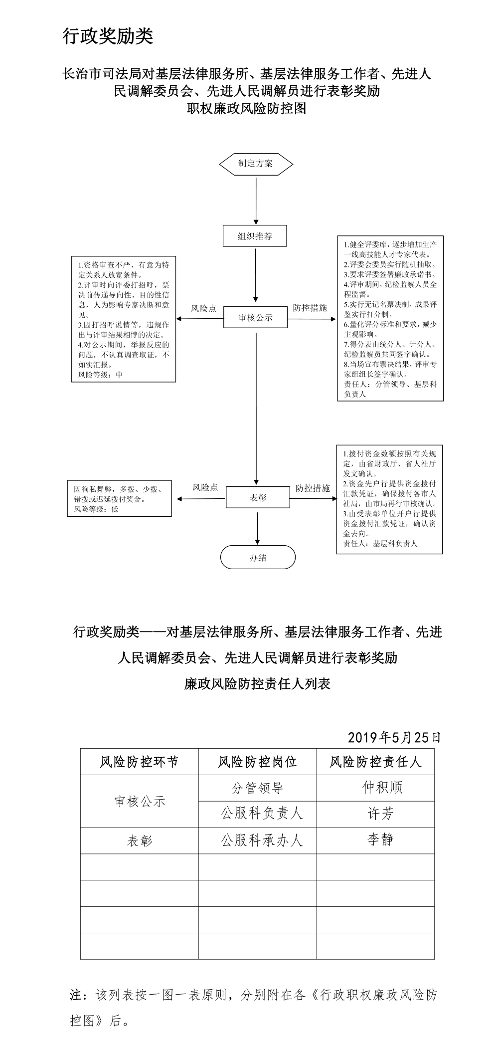 长治市司法局对基层法律服务所、基层法律服务工作者、先进人民调解委员会、先进人民调解员进行表彰奖励 职权廉政风险防控图
