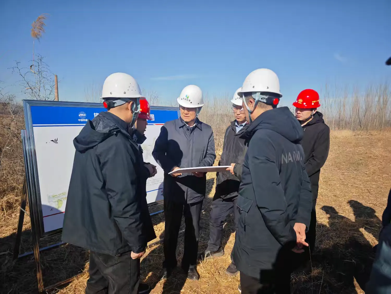 郭爱斌局长首先来到承担安居净水厂建设任务的第二标段施工现场。详细询问了施工进度计划、水处理工艺及质量控制措施等问题。他强调,安居净水厂是后湾供水工程的关键节点,施工单位必须确保施工安全与工程质量,科学统筹施工组织,加快主体工程施工,全力完成年度建设目标。随后,查看了管线段的多个施工现场。针对一、三标段现场存在的地下水位偏高、地下管线复杂等施工难点,他要求务必做好详勘补勘工作,对多种可行施工方案进行科学论证与比选,紧盯关键节点,保证总体进度,确定最优方案。在正在进行管沟开挖的第四标段,郭爱斌局长强调施工过程中要加强安全防护,综合考虑现场情况优化管线布置,特别要加强管件采购与安装环节的质量管控,确保工程质量。